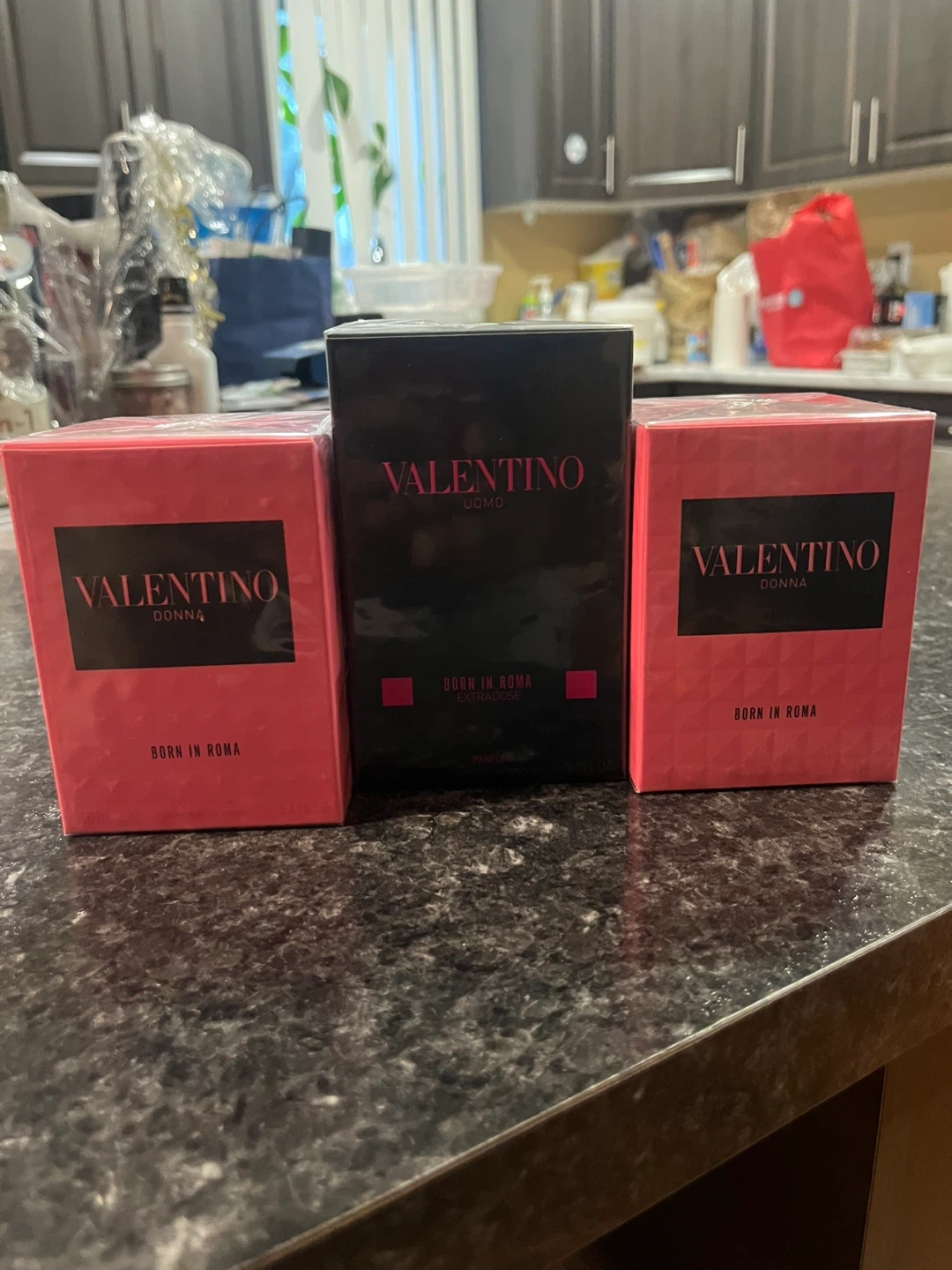Selling a set of Valentino Born In Roma perfumes! This includes two 'Donna' perfumes and one 'Uomo' perfume. Perfect for gifting or treating yourself to a luxurious scent