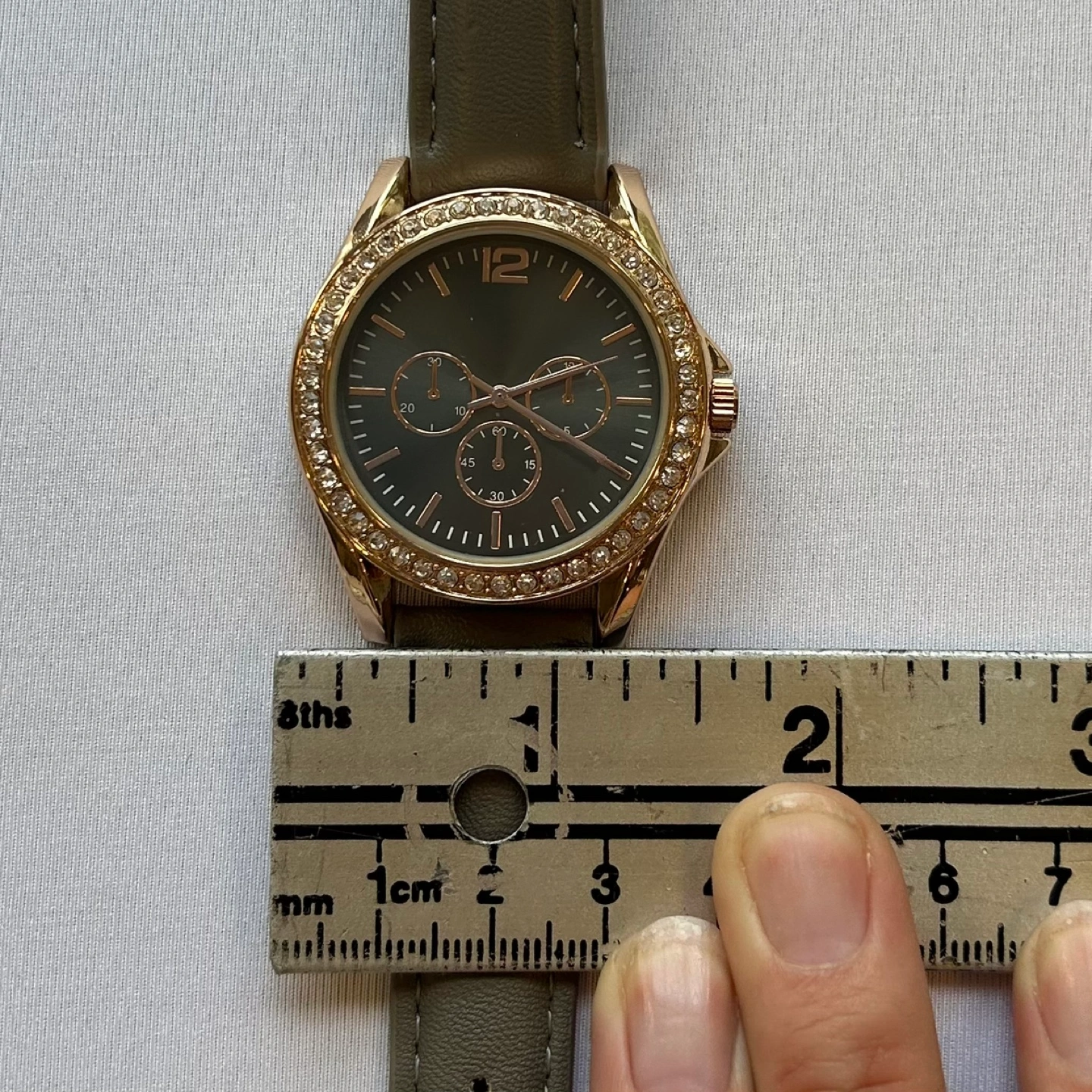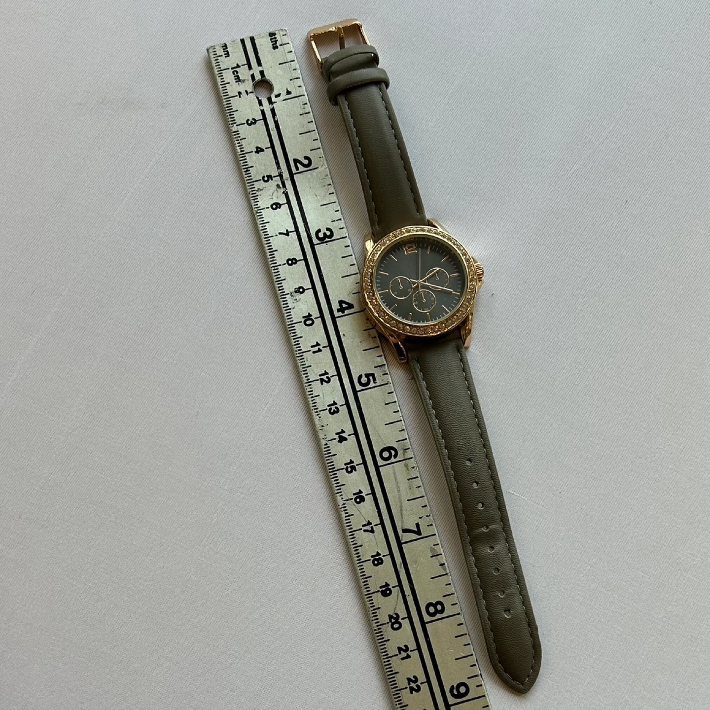 122This Valletta women's analog wrist watch features a gold tone case with a crystal accented bezel and a gray band, perfect for adding a touch of sparkle to your everyday look. This item is new but it has a small spot on the band (as pictured) and scratches on the back from trying to open to change the battery (pictured) - new battery installed. Features: Brand: Valletta Era: Modern Style: Dress/Casual Display: Analog Band Colour: Gray Case Colour: Gold Band Material: Imitation Leather Condition: Excellent Used Condition Size: Adjustable See photos for measurements. Flaws: Small spot on band (pictured) and scratches on back (pictured) otherwise in excellent condition. Cross posted. If the ad is up, it's available! Don't let this lovely timepiece slip away! Pickup only. Located 2 blocks west of Polo Park. Shipping options available message me for details.