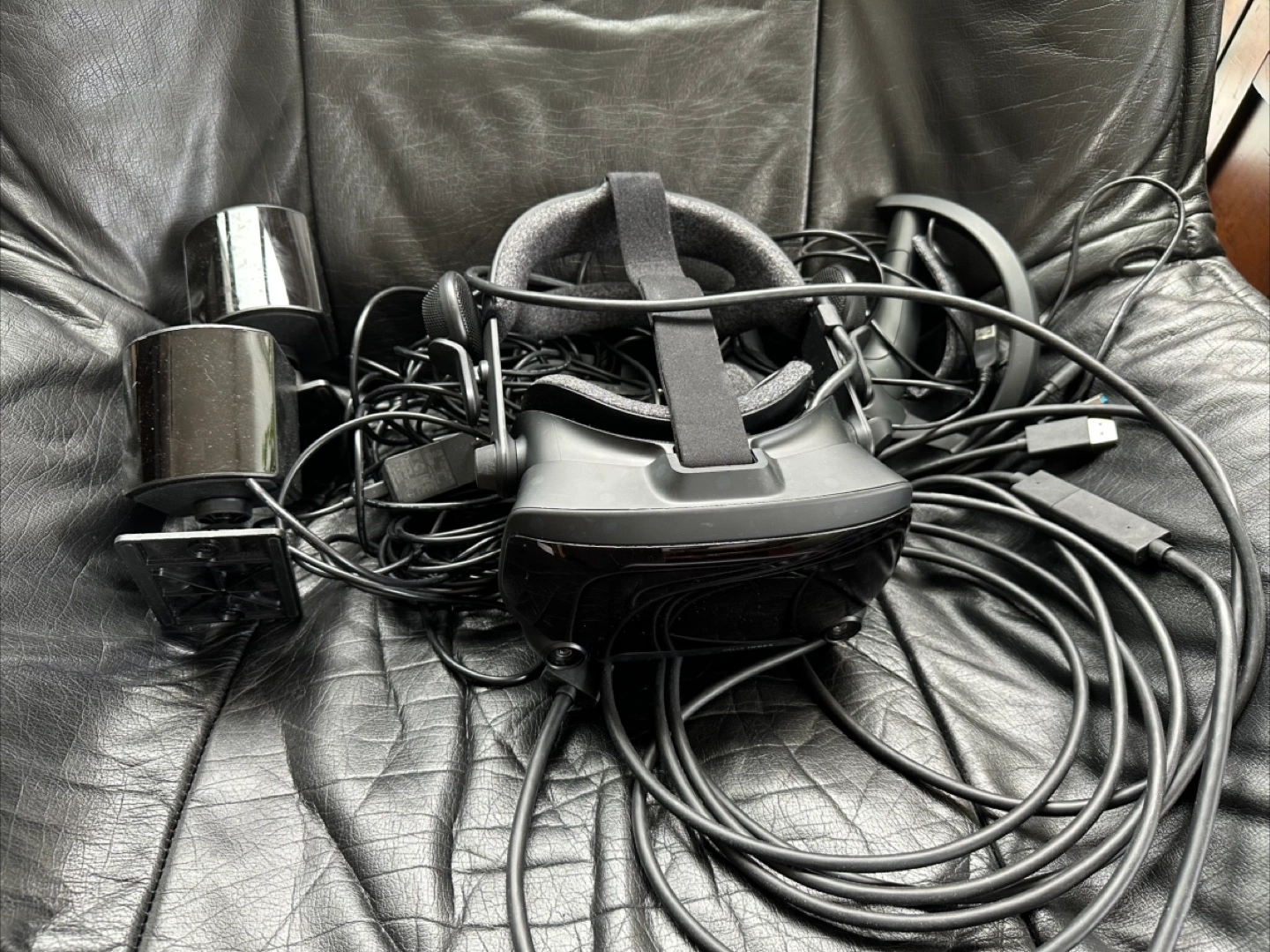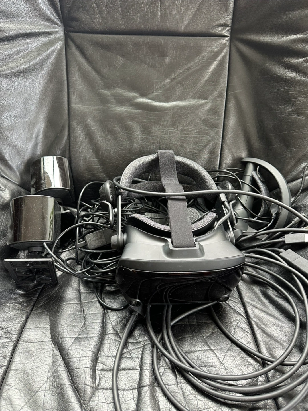 VR headset, controllers, and base stations. All cables included. No box, Pre-owned. Used a few times, works perfectly