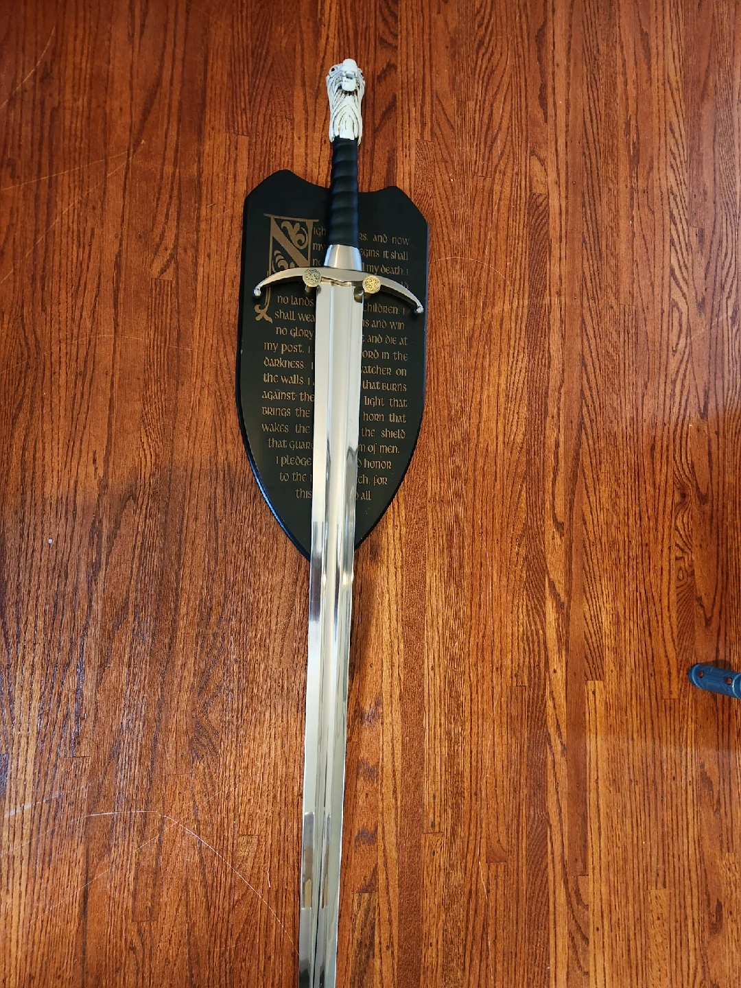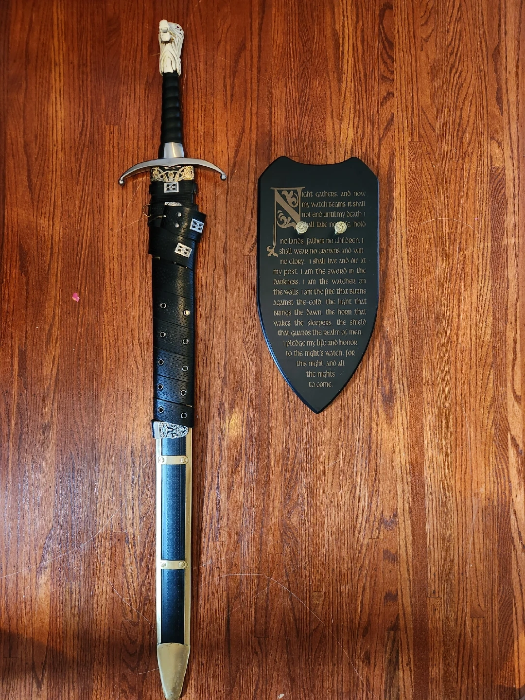 62This is a replica of Jon Snow's sword and scabbard from Game of Thrones, made by Valyrian Steel. It also includes the plaque so you can wall mount the sword.