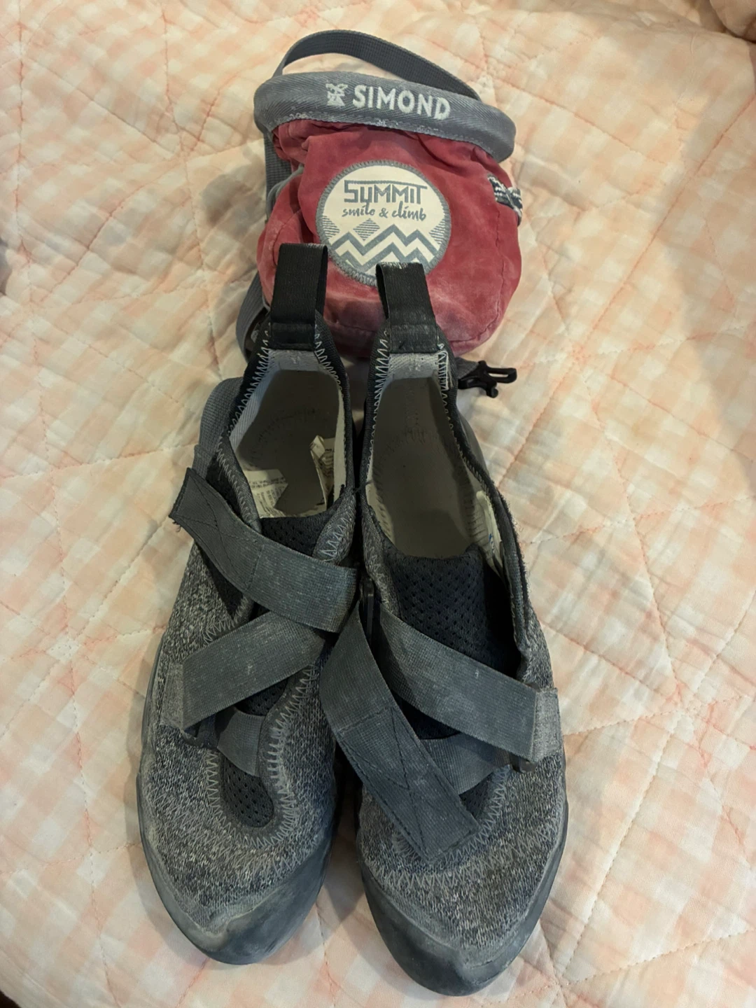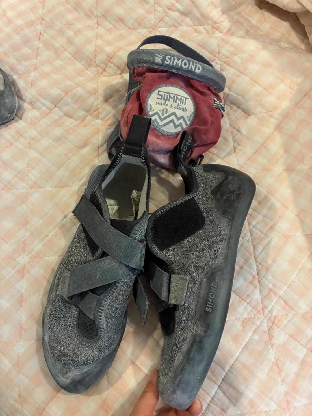 Buy & SellSimond Climbing Shoes & Chalk BagSimond Climbing Shoes & Chalk Bag$30Used pair of grey Simond climbing shoes with Velcro straps. Comes with a red Summit chalk bag. Chalk is 50g.WHERE TO MEETLittle ItalyView MapSELLERTatianaLittle Italy736 reviews0 chats·0 favorites·3 viewsSEND CHAT TO SELLERHi Tatiana! I’m interested in your listing.Hi Tatiana! I’m interested in your listing.Get the Karrot app to chatSign In to chat
