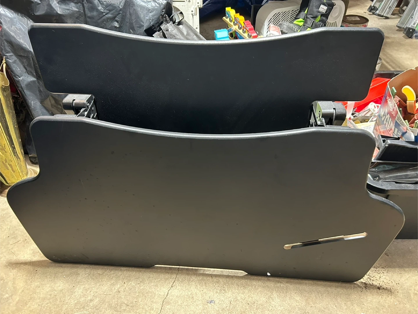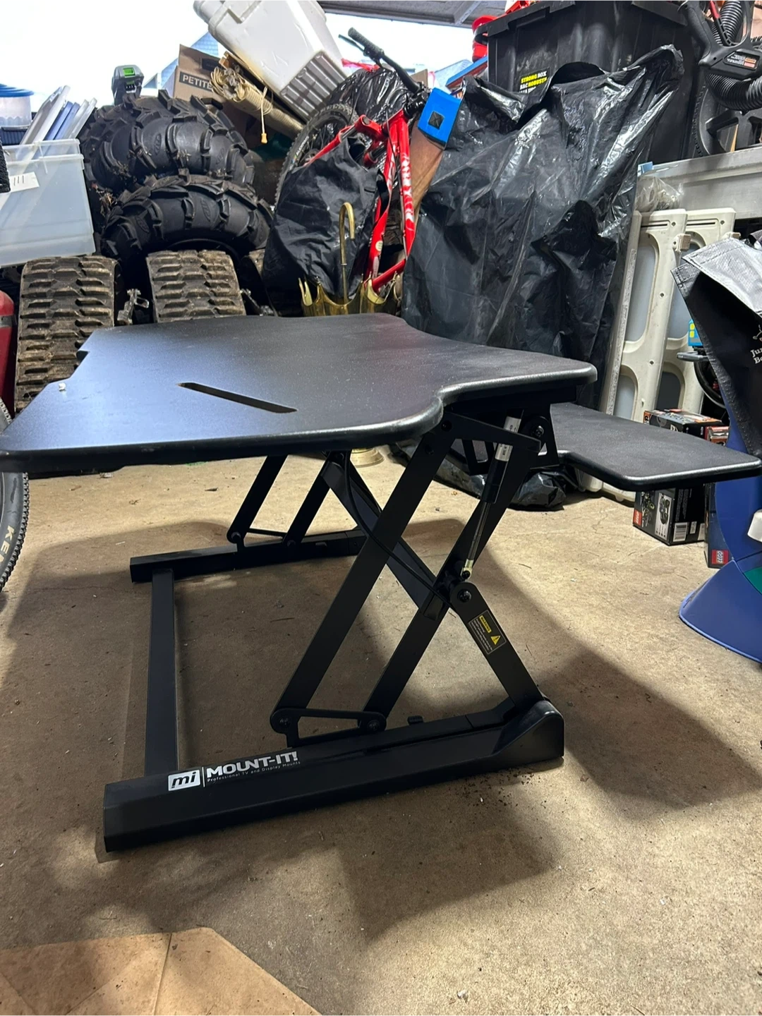 Looking to sell my Mount-It! standing desk converter in black. It's in great shape and ready to help you switch up your work routine! This converter sits on top of your existing desk and lets you easily adjust between sitting and standing positions. Perfect for a home office or anyone looking to add some movement to their workday