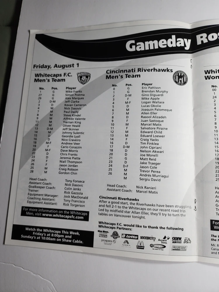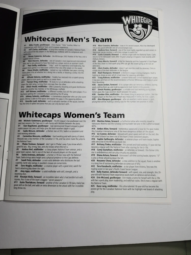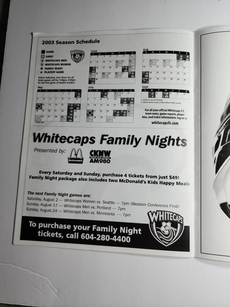 137Selling a Vancouver Whitecaps 2003 program! It includes team rosters, schedules, and some cool ads. A piece of Whitecaps history for any fan
