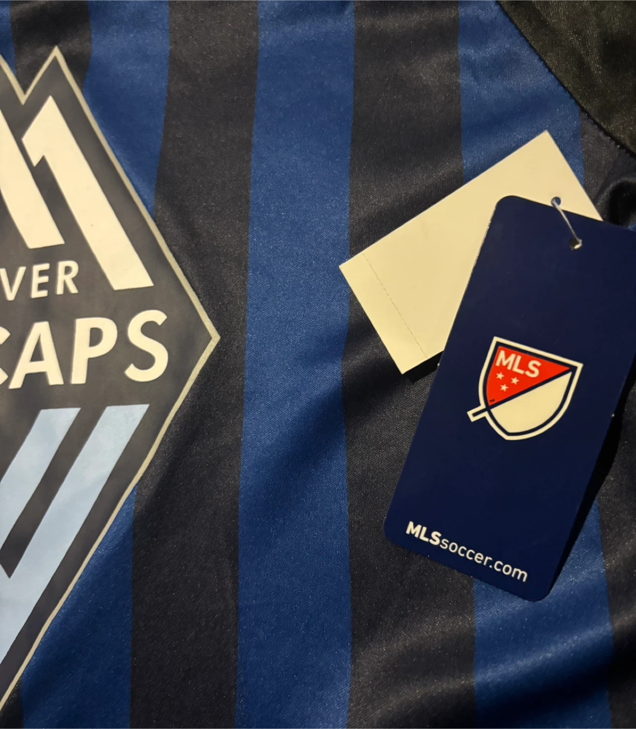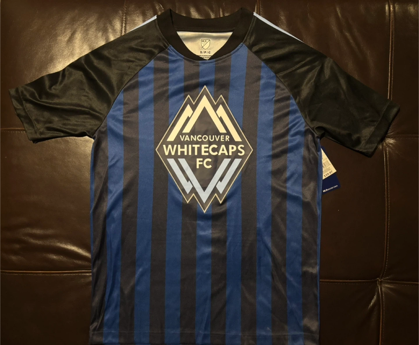60Selling a brand new Vancouver Whitecaps FC jersey! It's a size small and features a cool blue and black striped design. The jersey is made of 100% polyester, so it's lightweight and comfy. Perfect for showing your team spirit! Made in Bangladesh.