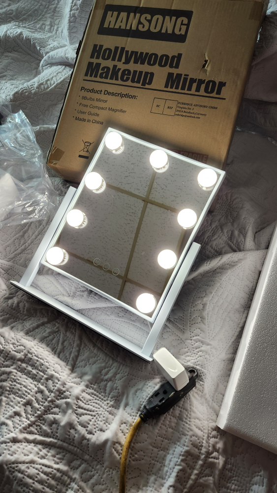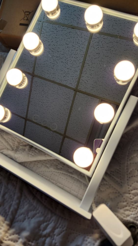 New in package works excellent never used comes with 10x magnification dimmable 9 bulb, 3 color settings beautiful great Christmas gift