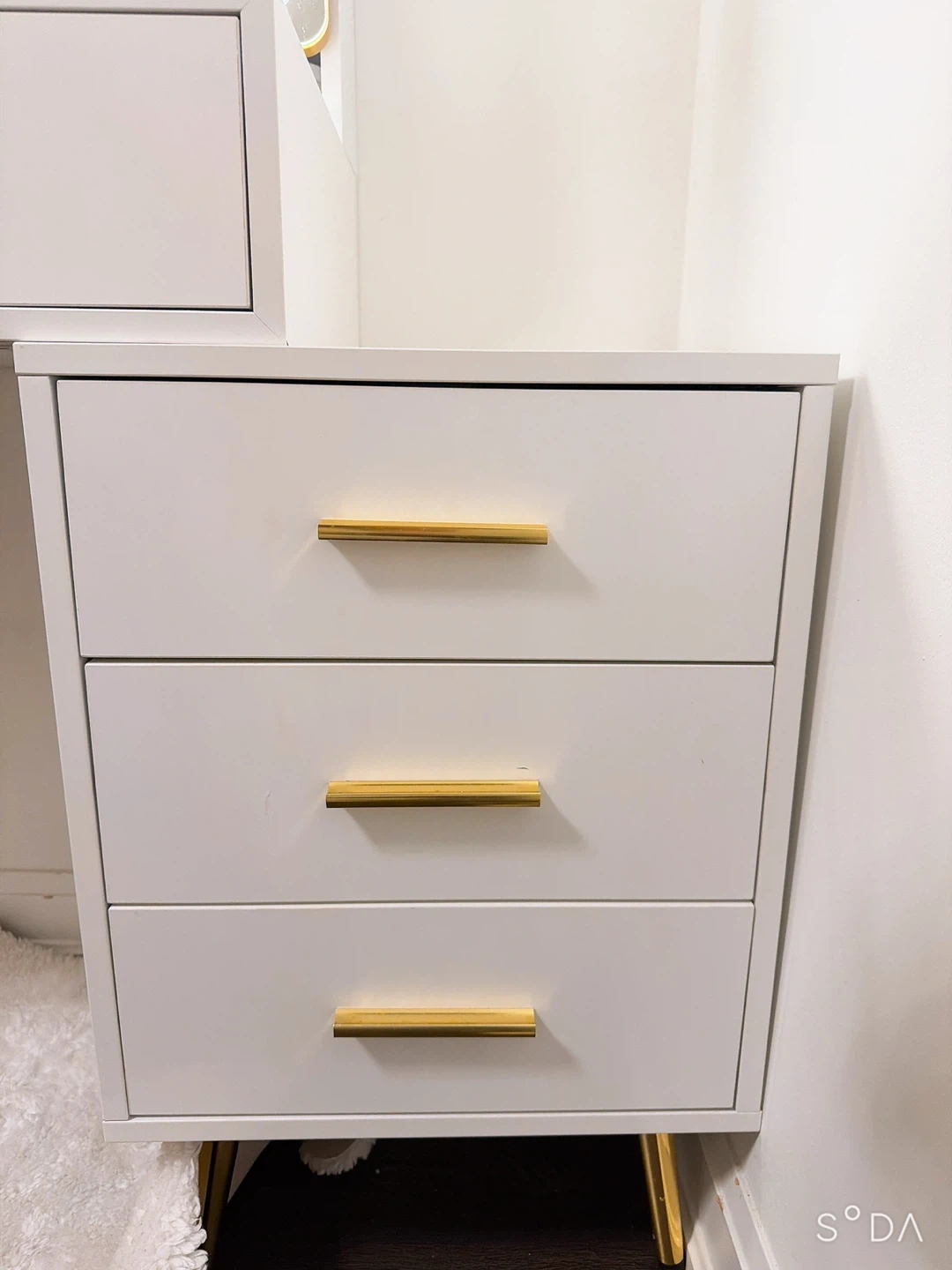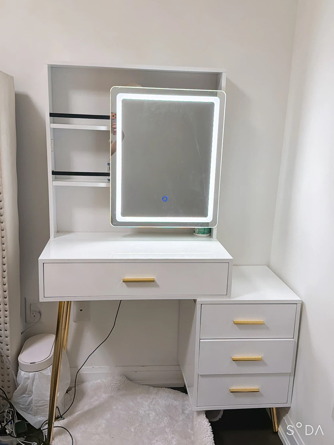 Selling a lovely vanity makeup table in white! It comes with a lighted mirror and has a sleek, modern design. Perfect for getting ready in style and keeping your space organized