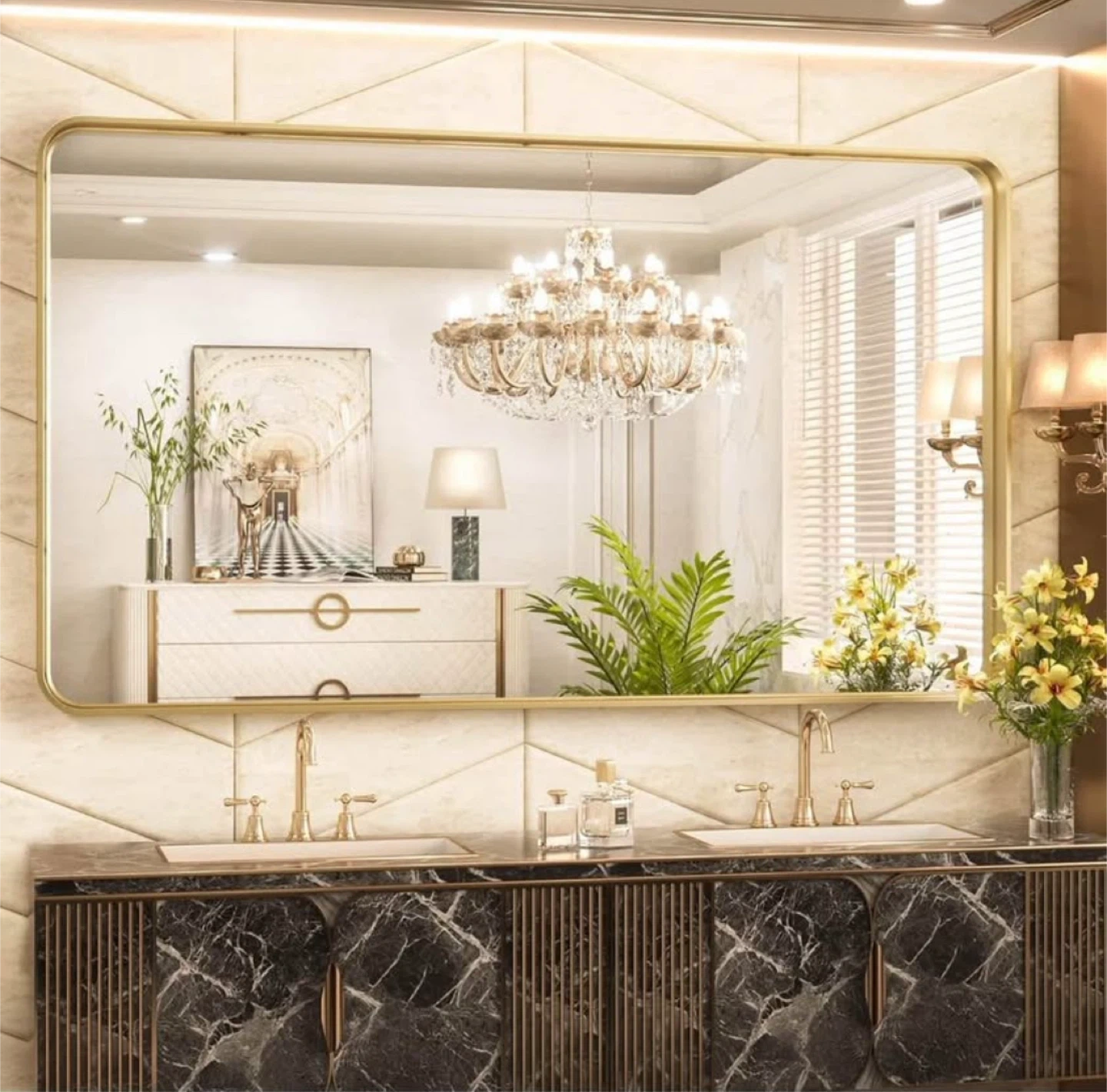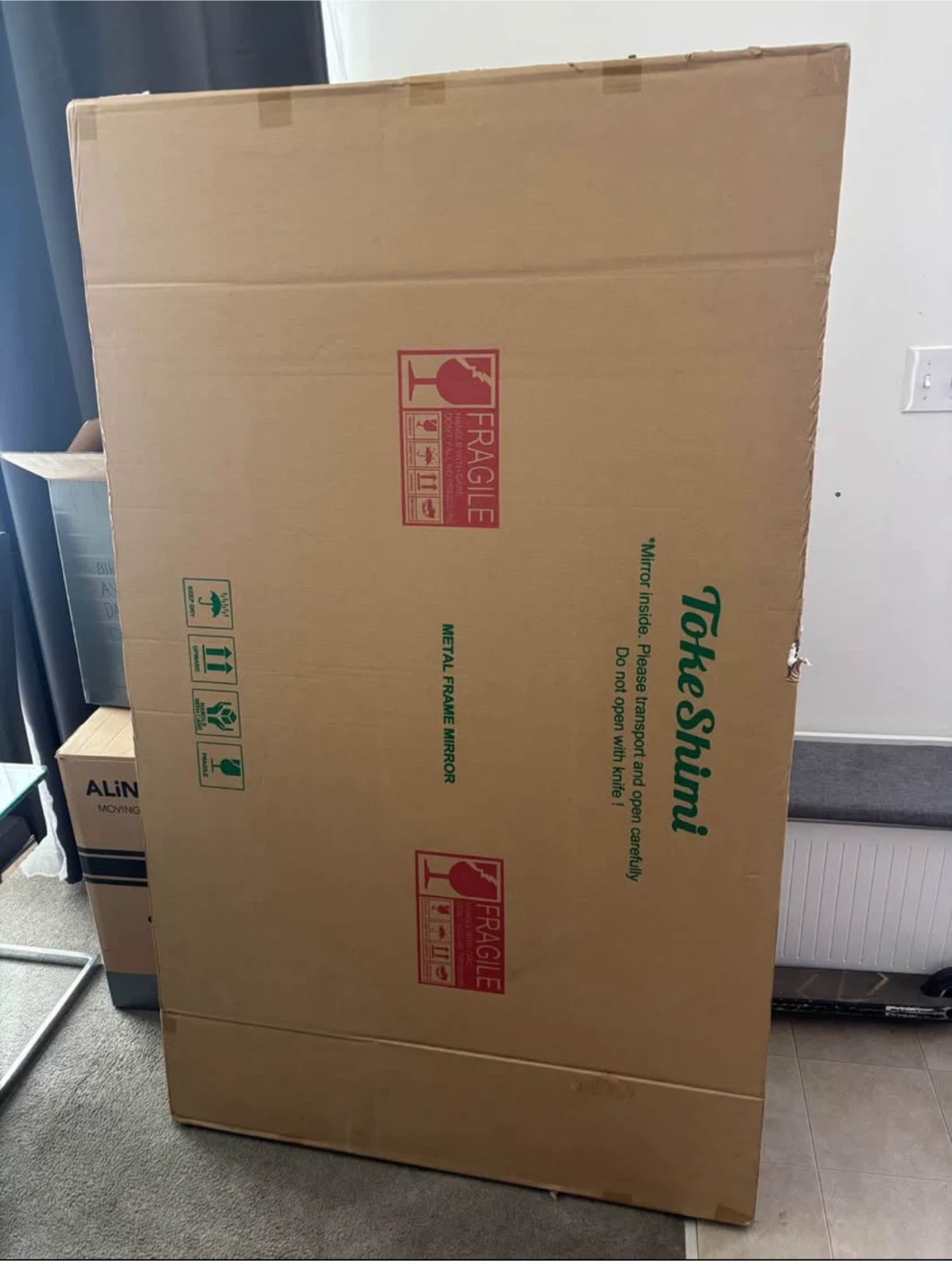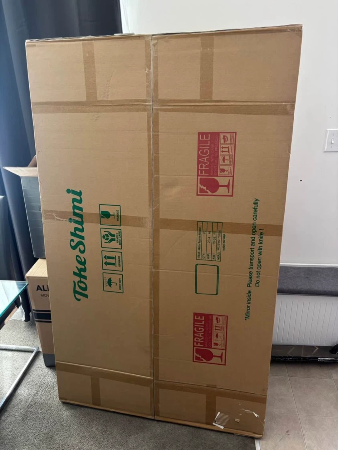 Selling a Toke Shimi mirror with a gold metal frame! It's still in its original packaging, so it's brand new. The size is 59.8 inches in length and 35.8 inches in width. Retails for $399.99