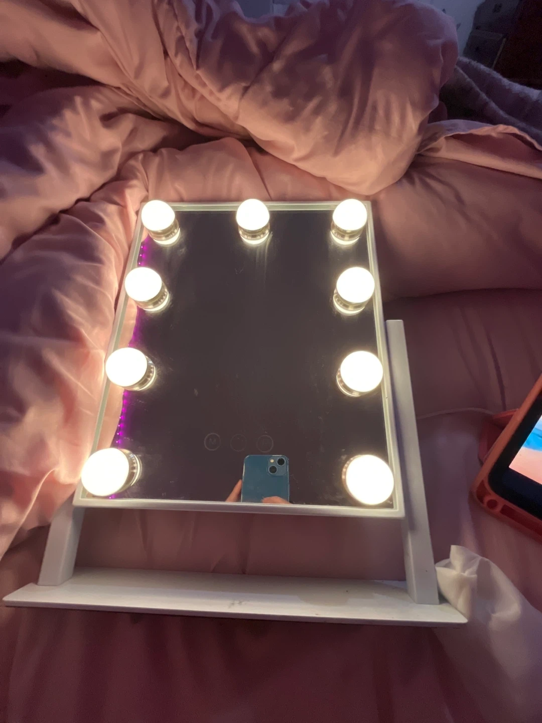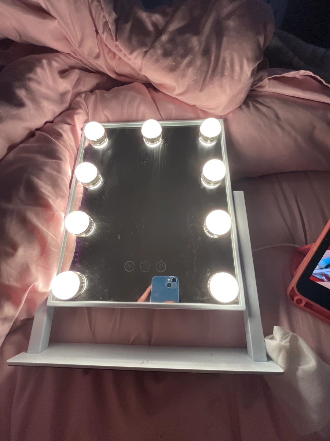 18Selling a vanity mirror with lights! Great for makeup application or just adding some extra light to your space. It's in good condition and ready for a new home, also comes with different settings of brightness and colour