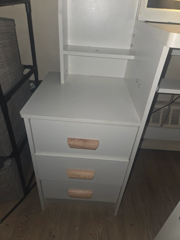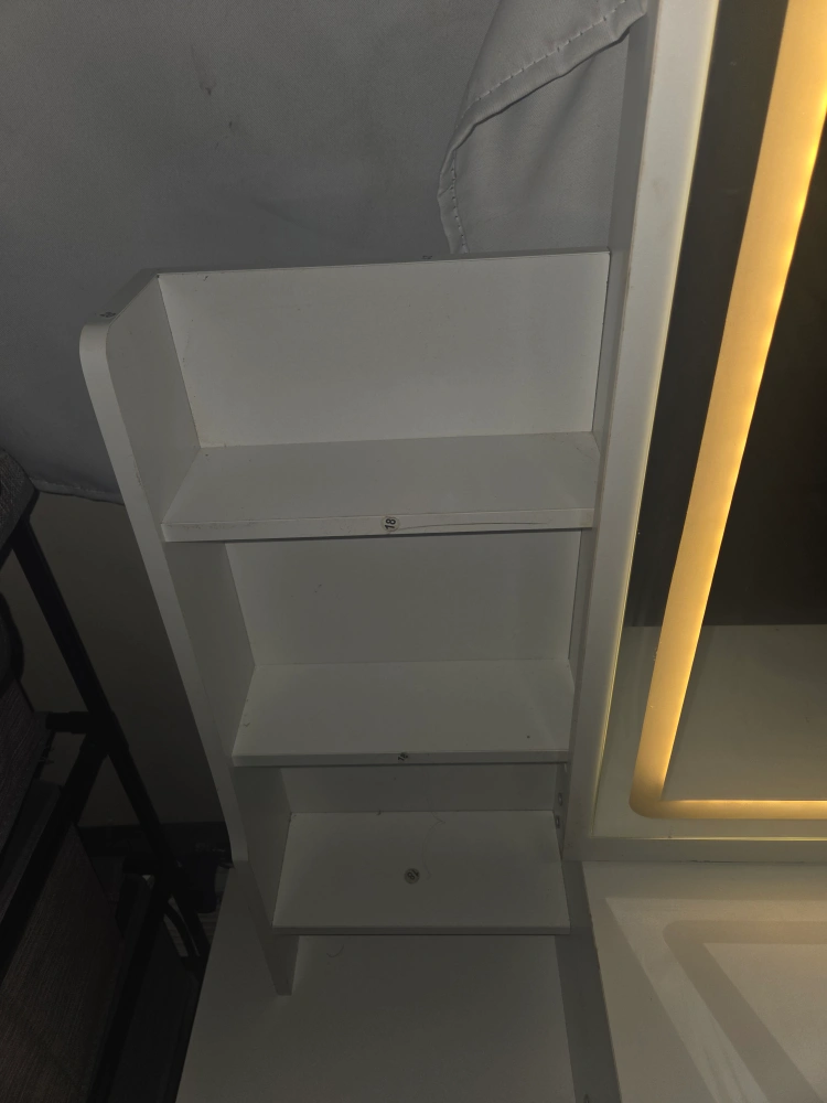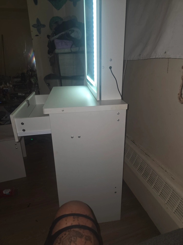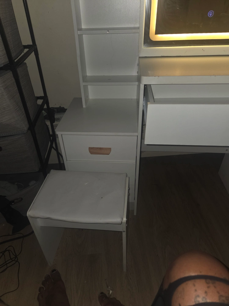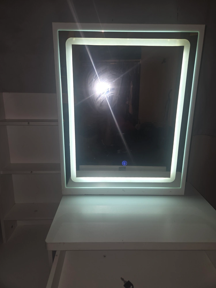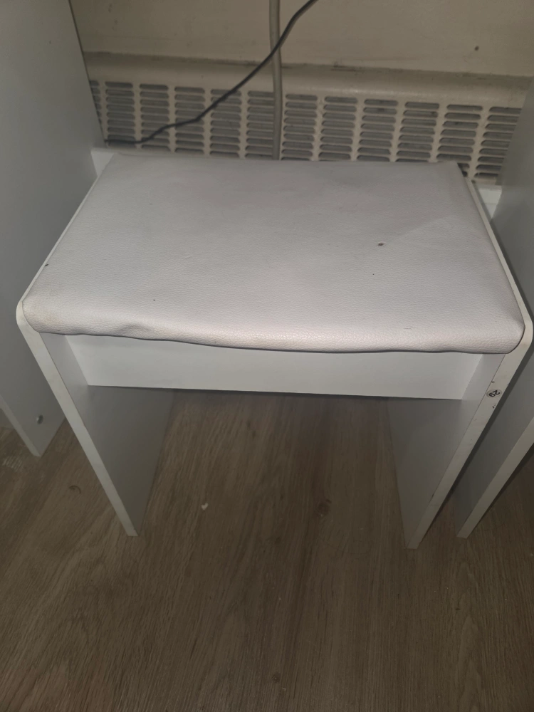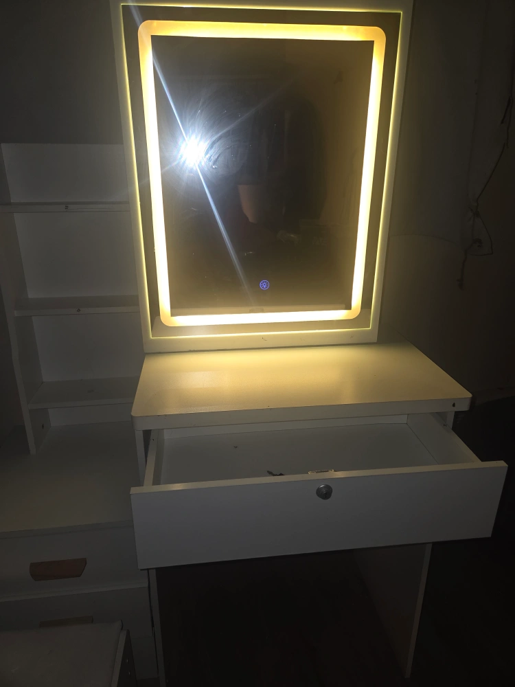 10Selling a vanity table with a lighted mirror! It's in great condition and would be perfect for getting ready in the morning or for adding a touch of glamour to your space. The vanity includes a drawer and a stool. L × w × H 36 × 27×54