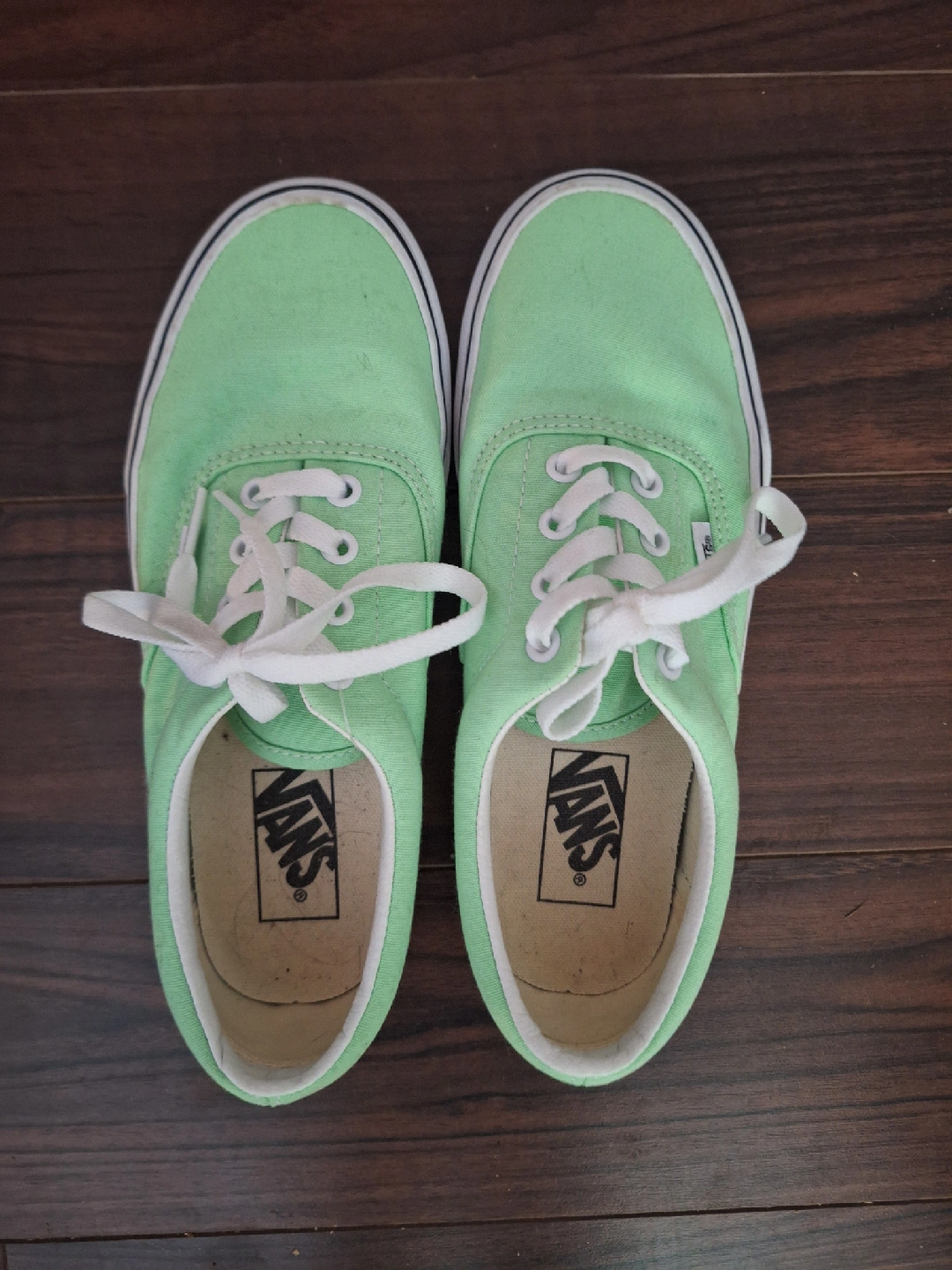 Selling a pair of Vans Era sneakers in a refreshing mint green colour! These are a women's size 7 (US). They're in great condition, never worn outside and ready for a new home. Perfect for adding a pop of colour to your casual outfits