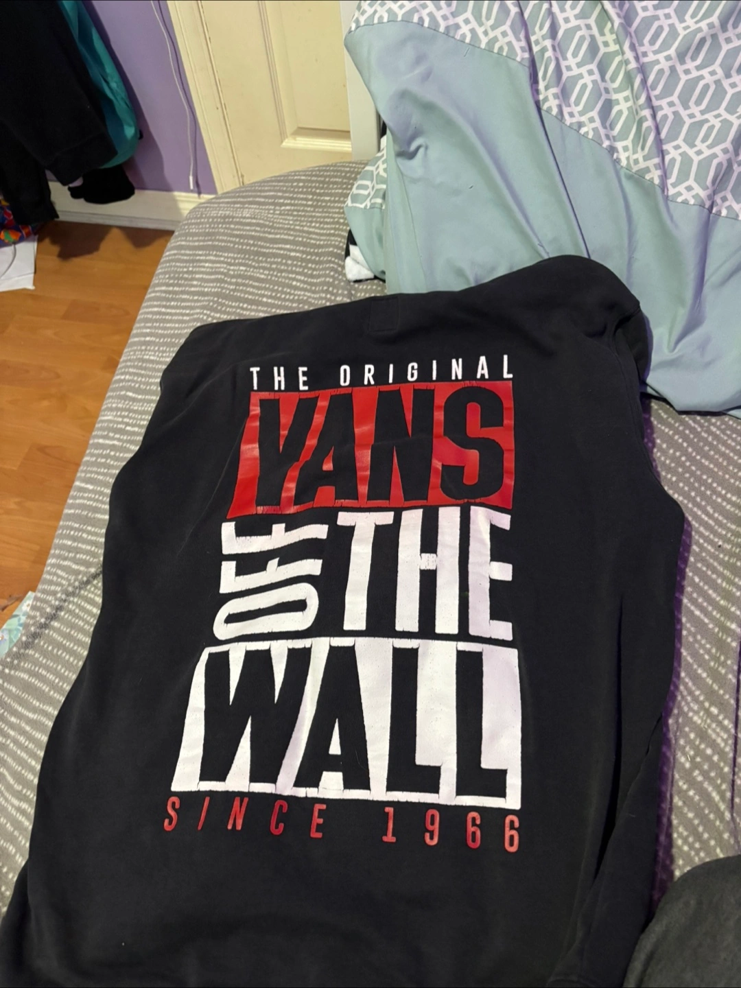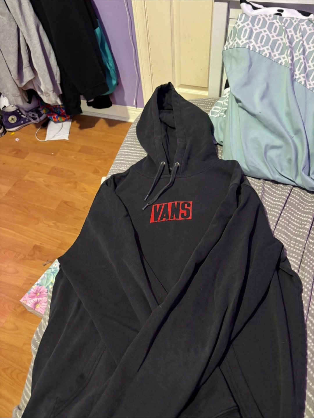 Selling a Vans hoodie in size medium! It's black with the classic "Off The Wall" logo. Great for everyday wear!