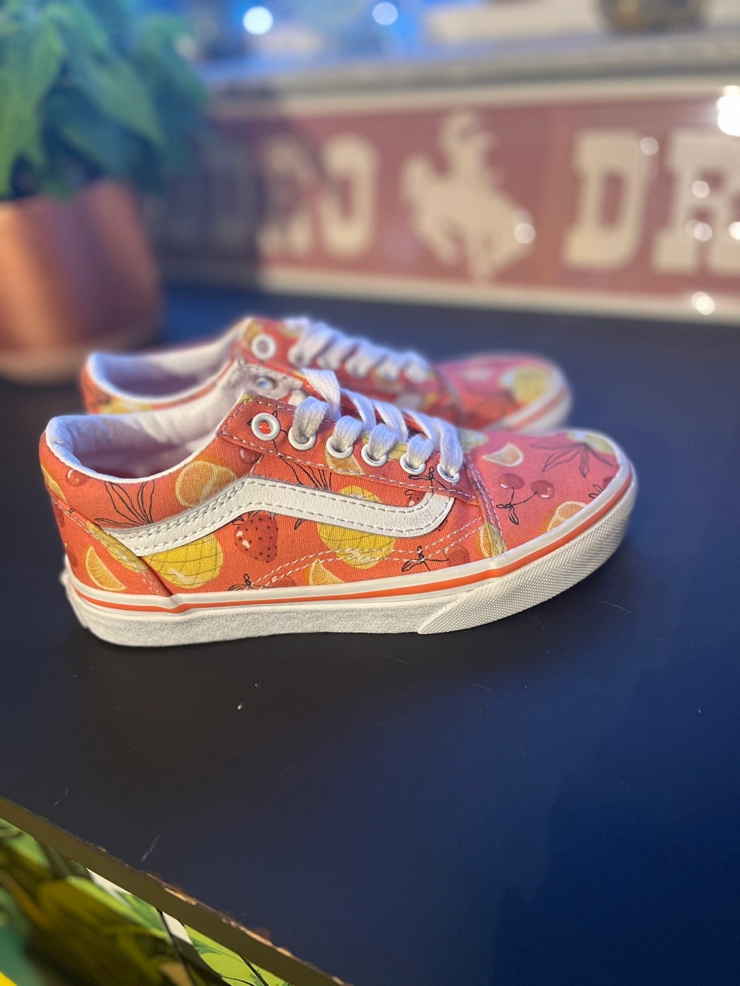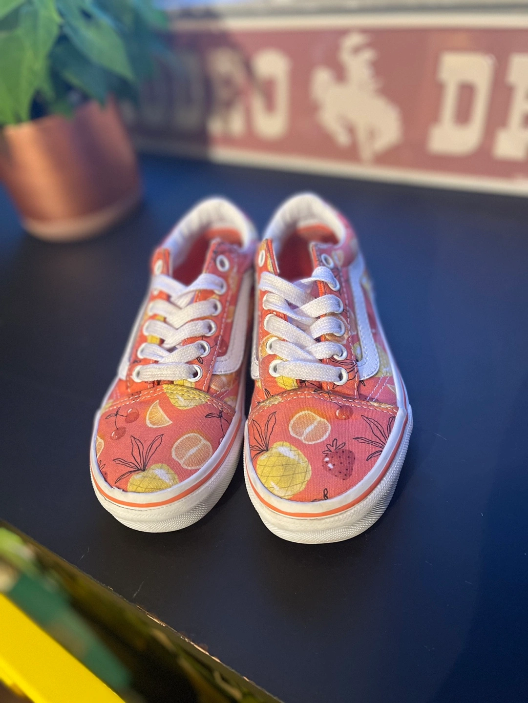 76Vans Old Skool kids shoes in size 13 . Pink with a fruit pattern. Rare design
