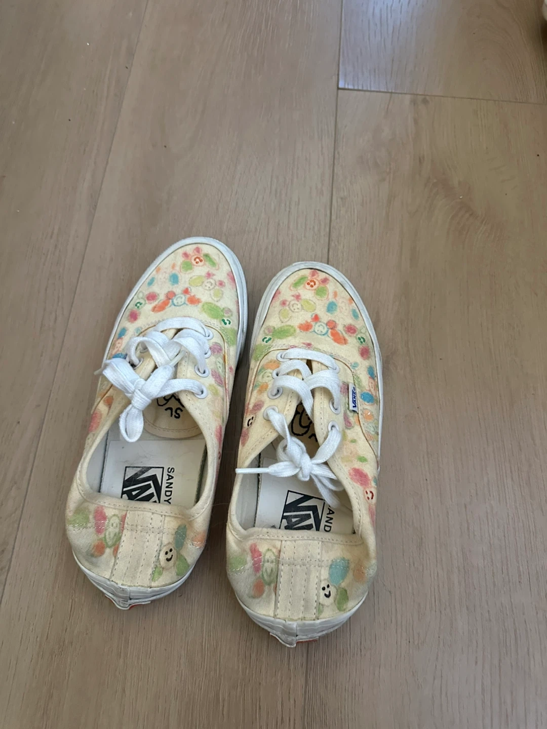 65Selling a pair of Vans Authentic sneakers in a collaboration with Sandy Liang! These have a cute floral pattern. They're in good used condition and are a US size 6.