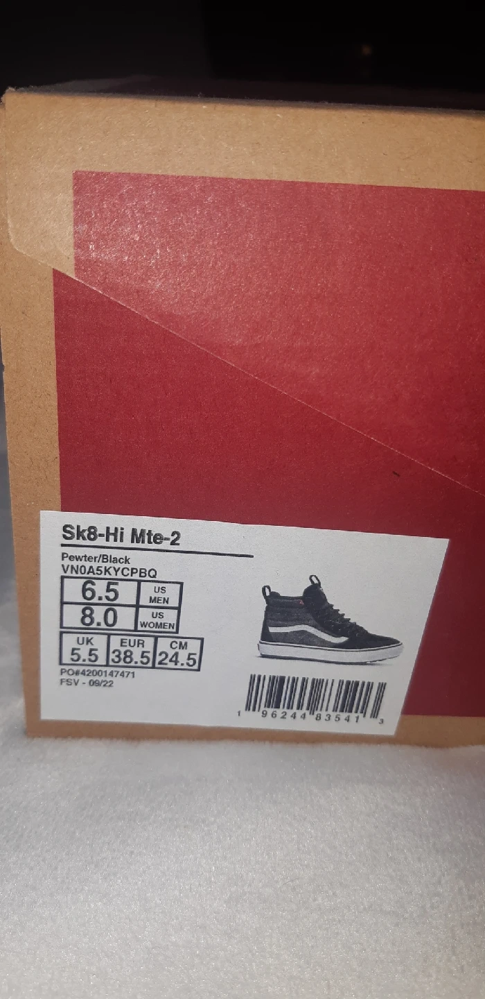 60Selling a pair of Vans SK8-Hi MTE-2 shoes in black and grey! These are perfect for keeping your feet warm and dry. They come with the original box and an extra set of laces. Great for the upcoming colder weather!
