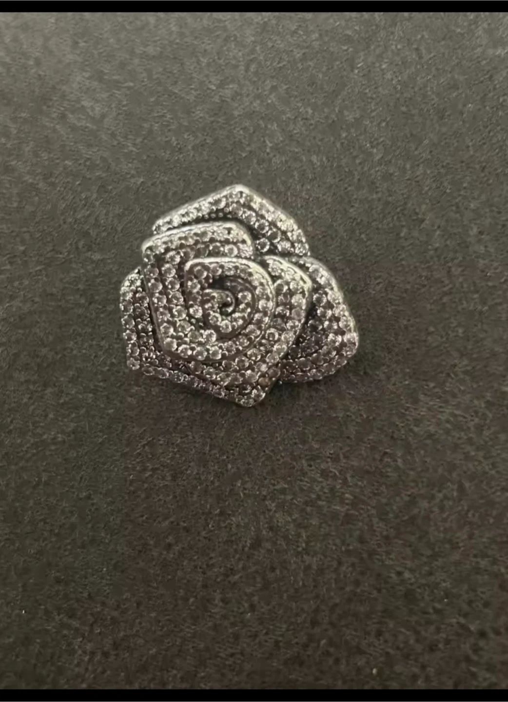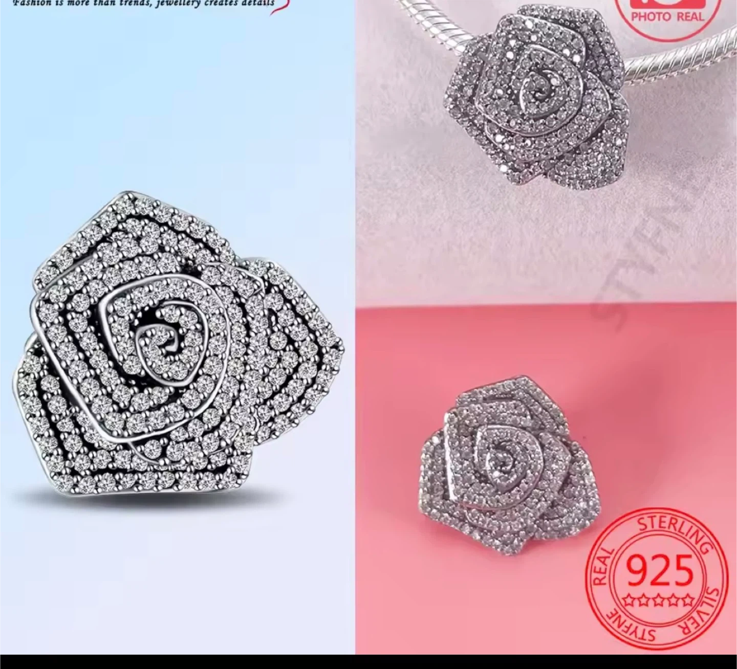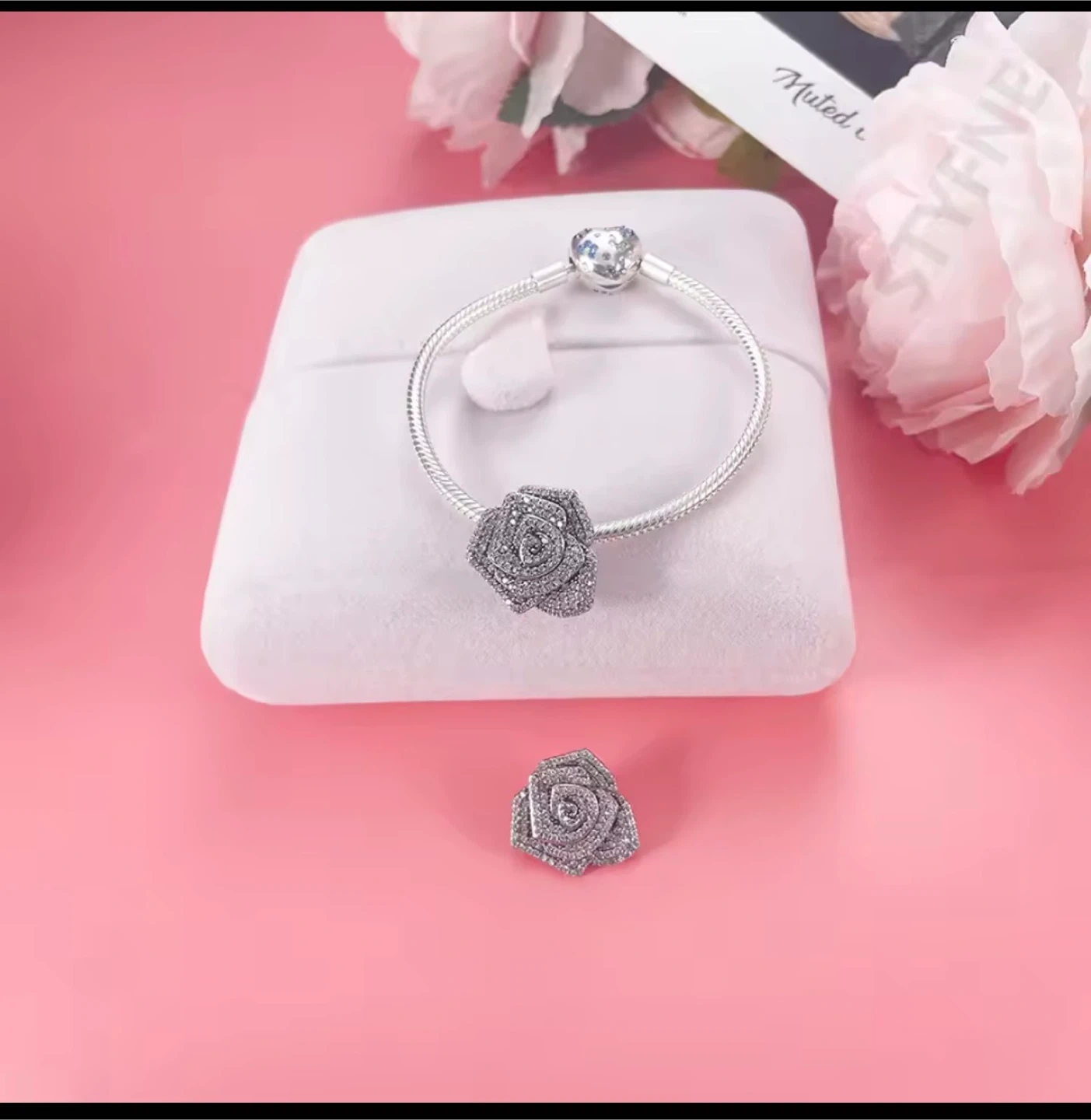 🏆This sterling silver charm bead features a beautiful rose design, encrusted with sparkling stones. It's stamped S925 for authenticity. The charm has a total mass of 1.20g.🏆