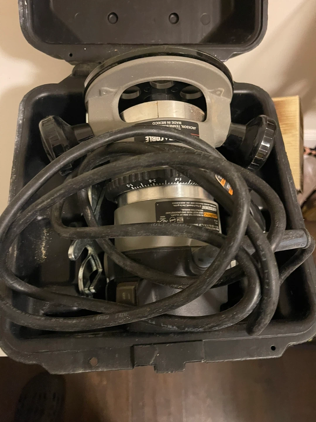 This is a Porter-Cable trim router. It comes with its original carrying case. Includes power cord.