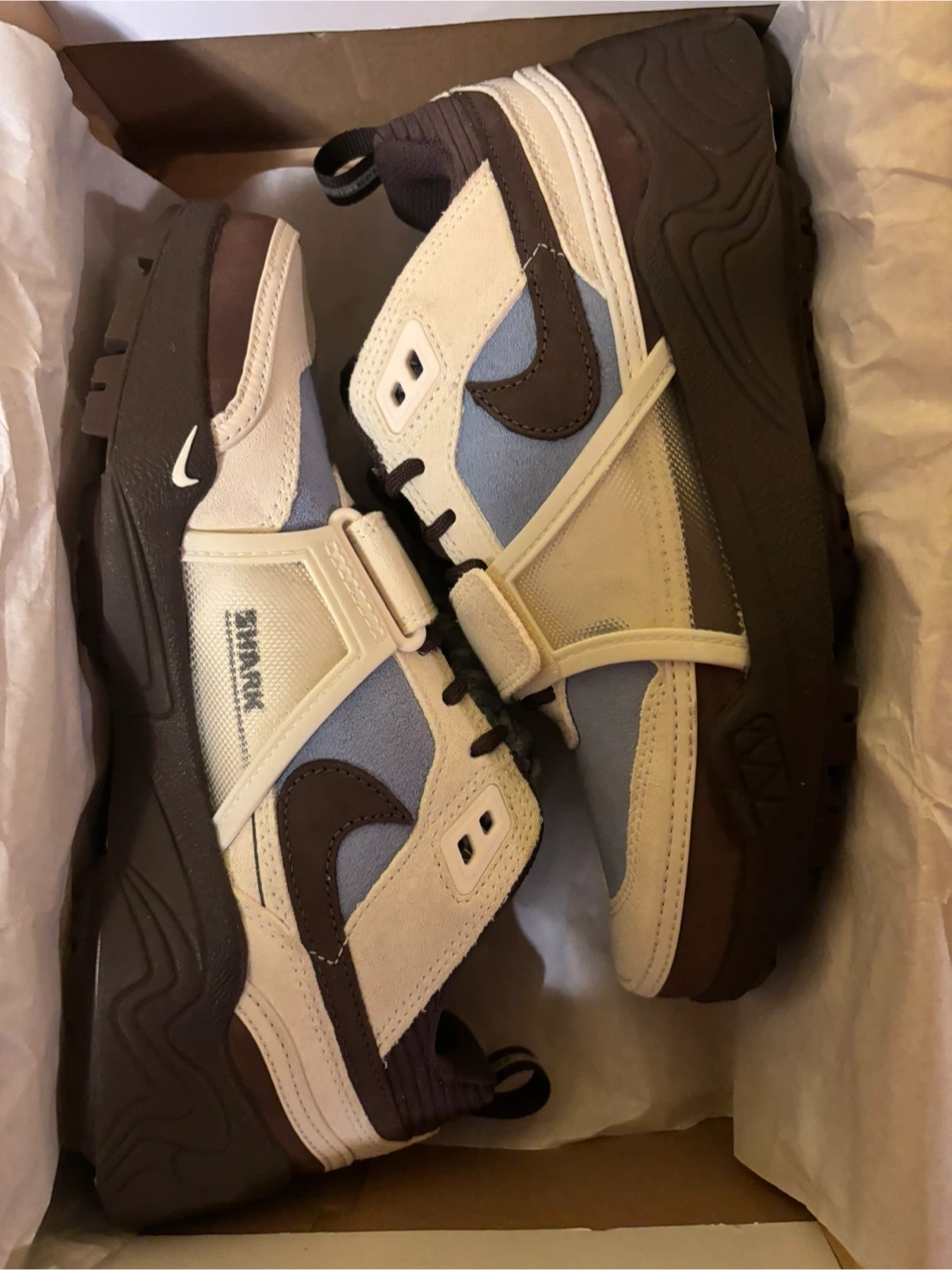 Selling a brand new pair of Nike Zoom Field Jaxx Travis Scott sneakers in size 6 These are in the Leche Blue/Baroque Brown Ivory colour way and come with the original box.