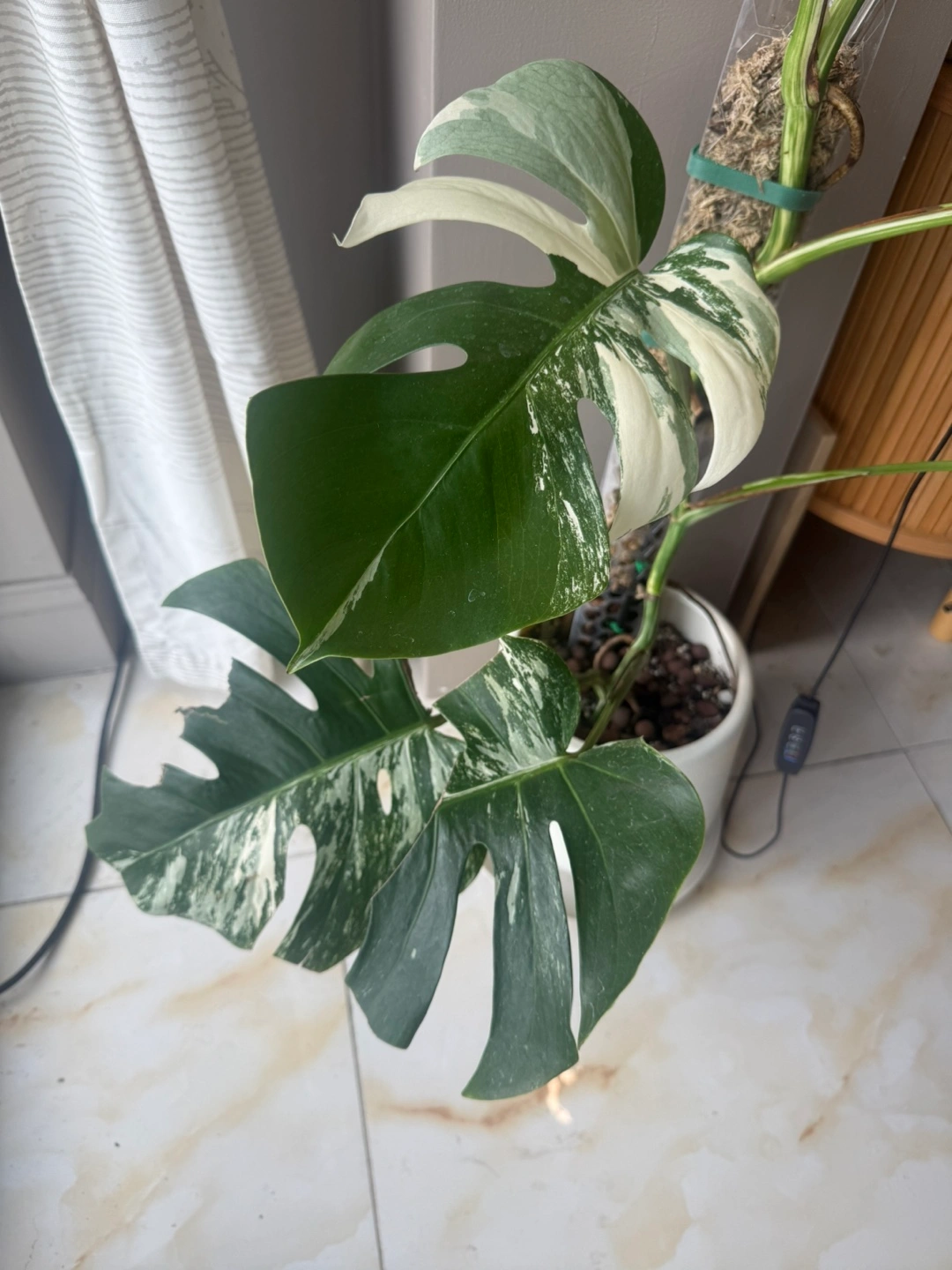 114Selling a beautiful Variegated Monstera Albo plant. large size 40” tall. This plant features stunning green and white marbled leaves, making it a unique addition to any indoor space. It's on moss pole and comes with an off-white planter/saucer. Pick up from queens elmhurst