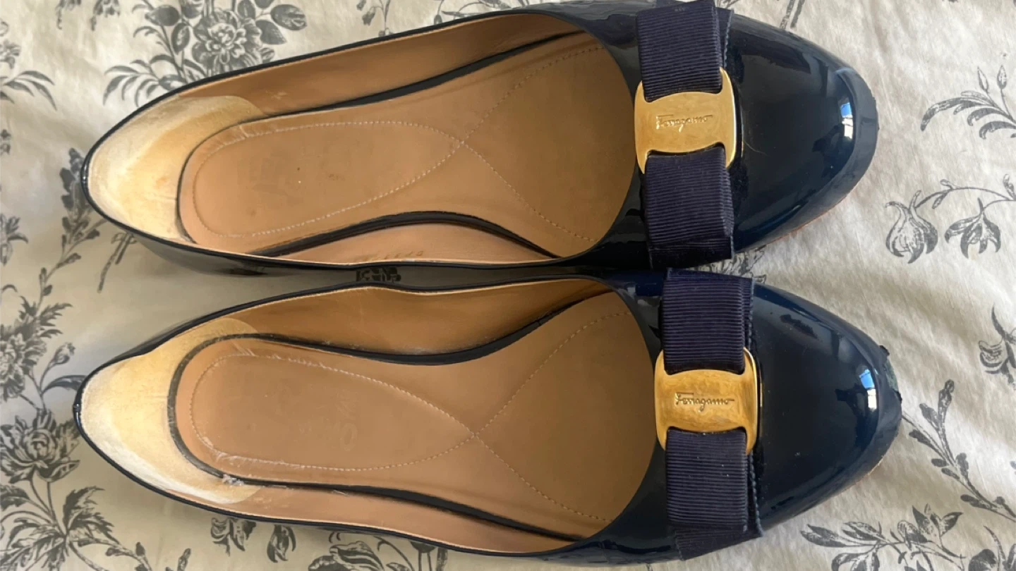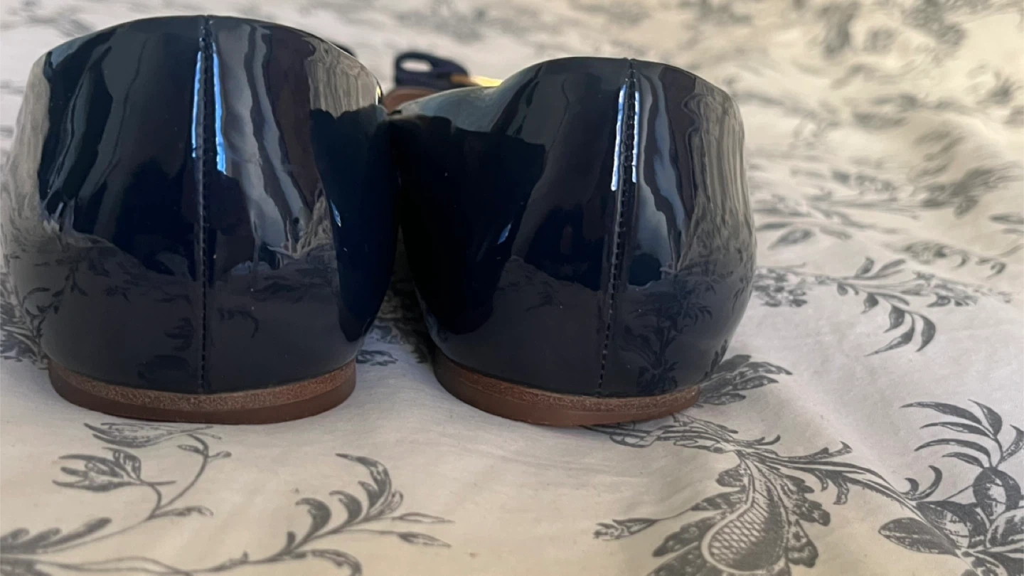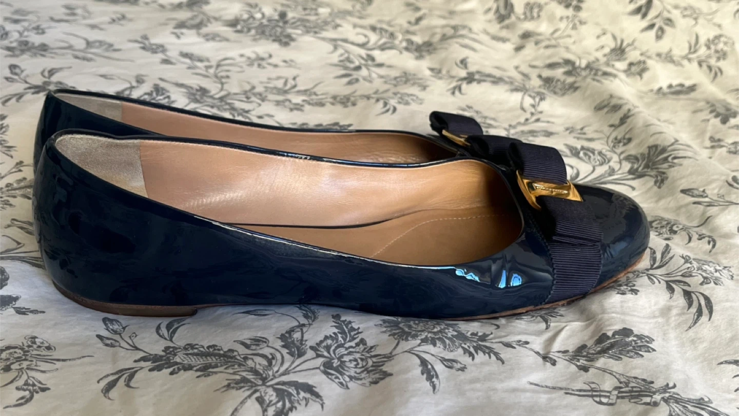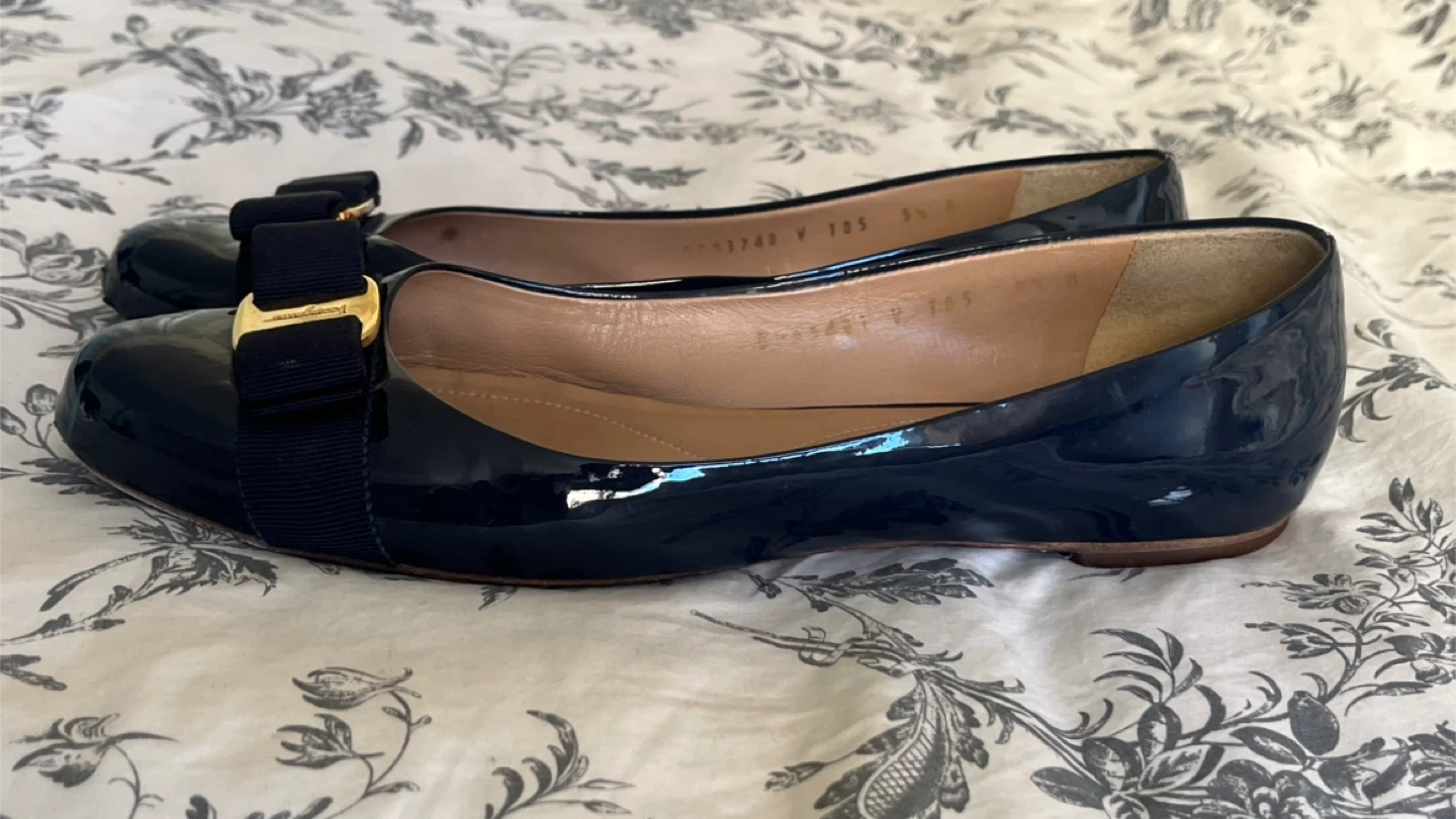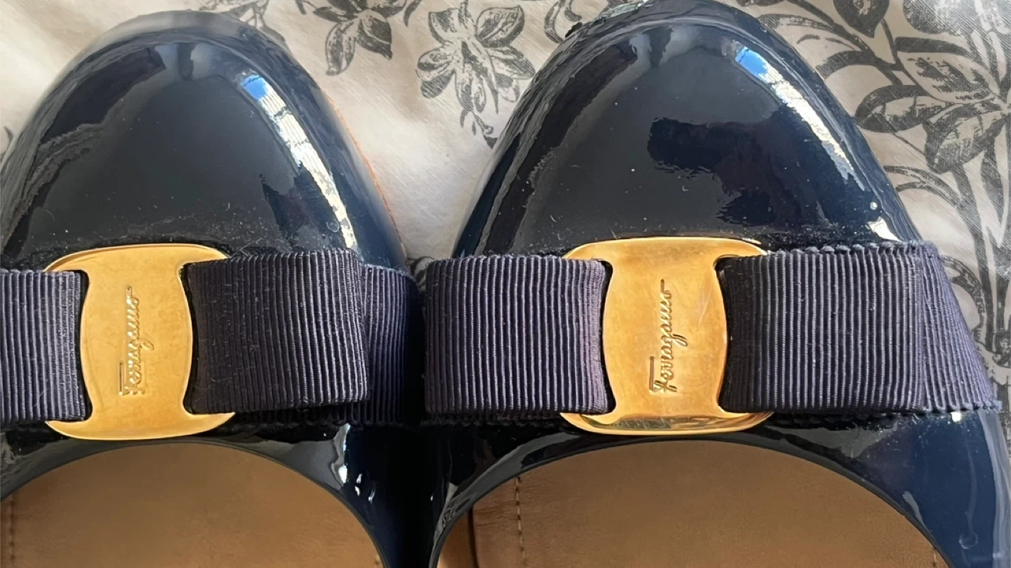 Product Details A glammed up version of the refined ballet flat in smooth patent leather. The sleek black makes this the perfect shoe for elegant looks or to add a rock touch to daywear. The Vara grosgrain bow with golden metal plate and engraved logo decorates the rounded tip. Heel 1cm Composition: patent calfskin Made In ITALY Product code: 01A181 574556