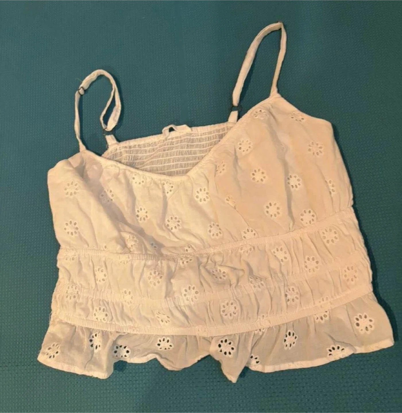 Selling two cute crop tops! One is black with thick straps, and the other is a white eyelet design with adjustable spaghetti straps. Both are in great condition and perfect for summer