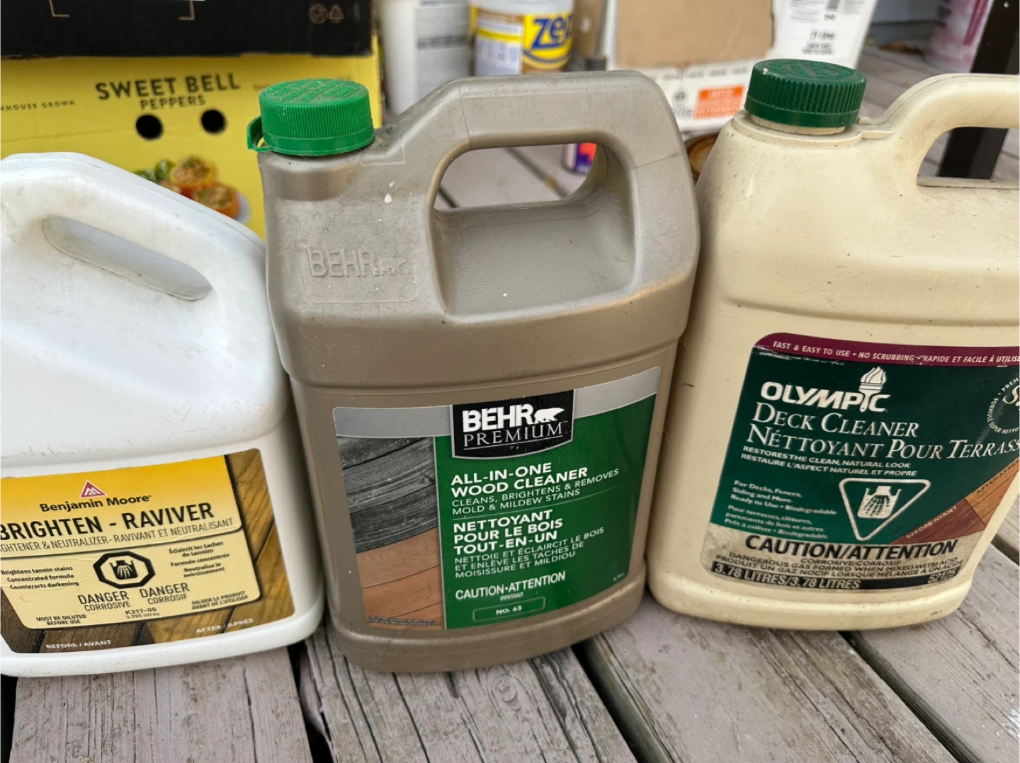 59I have a variety of wood and deck cleaning products available. Brands include Behr, Thompson's Water Seal, Olympic, and Benjamin Moore. Perfect for cleaning and restoring your outdoor spaces! All for 25$ Must new