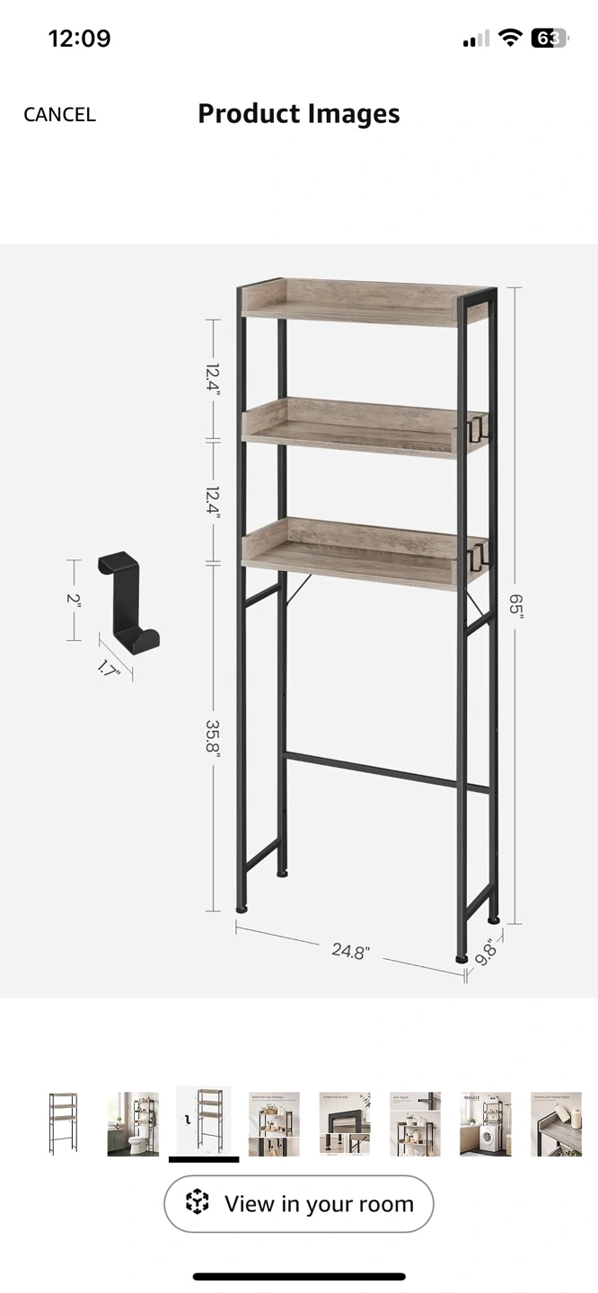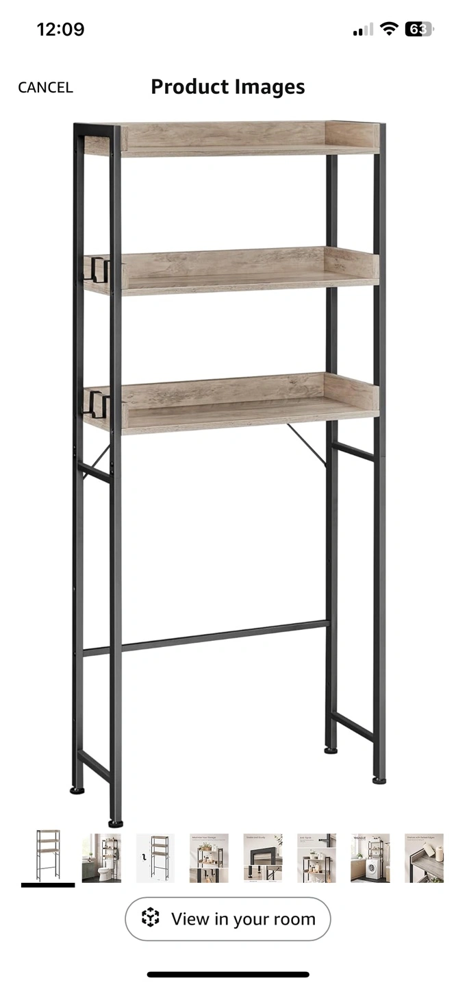 18Three-tier bathroom storage shelf. Grey and black. Over-toilet design. Metal frame. Wood shelves. Excellent for small spaces. When I purchased the item, the price was $101. Invoice in pictures. Please do not message saying it’s available for cheaper.