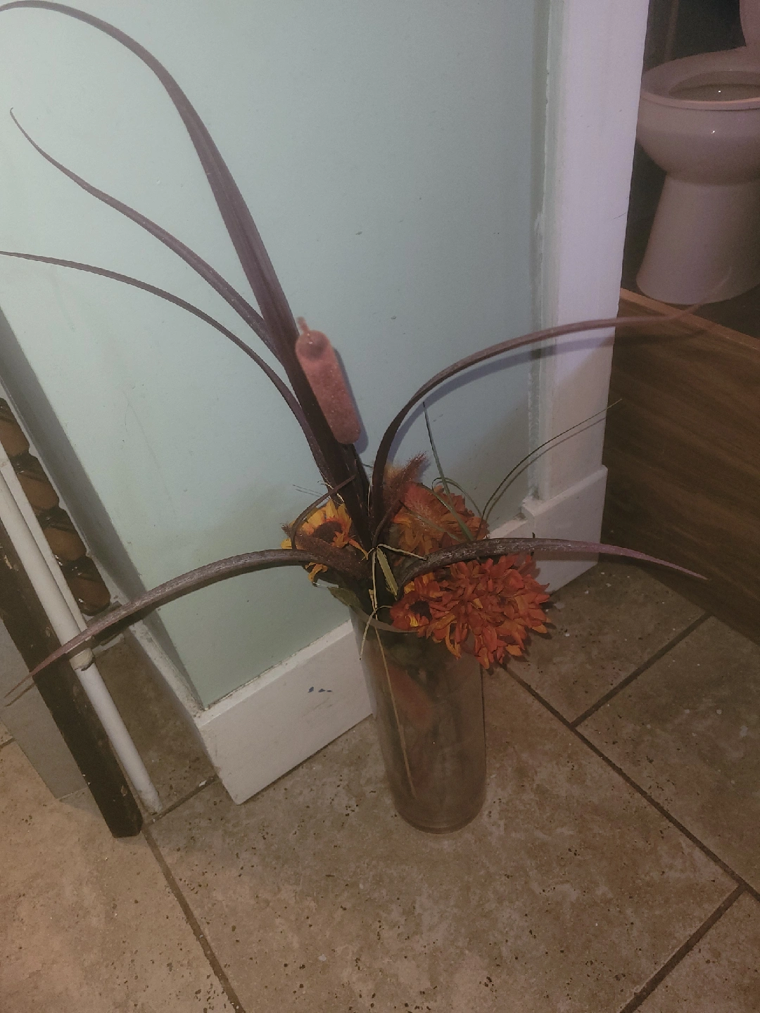 20tall vase with fall flowers artificial ones