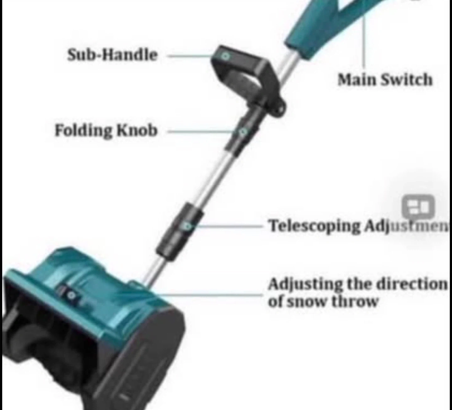 Snow Shovel Cordless, Battery Powered Snow Blower with Directional Plate & Adjustable Front Handle, Snow Blower Shovel for Patio Deck Driveway NO BATTERY