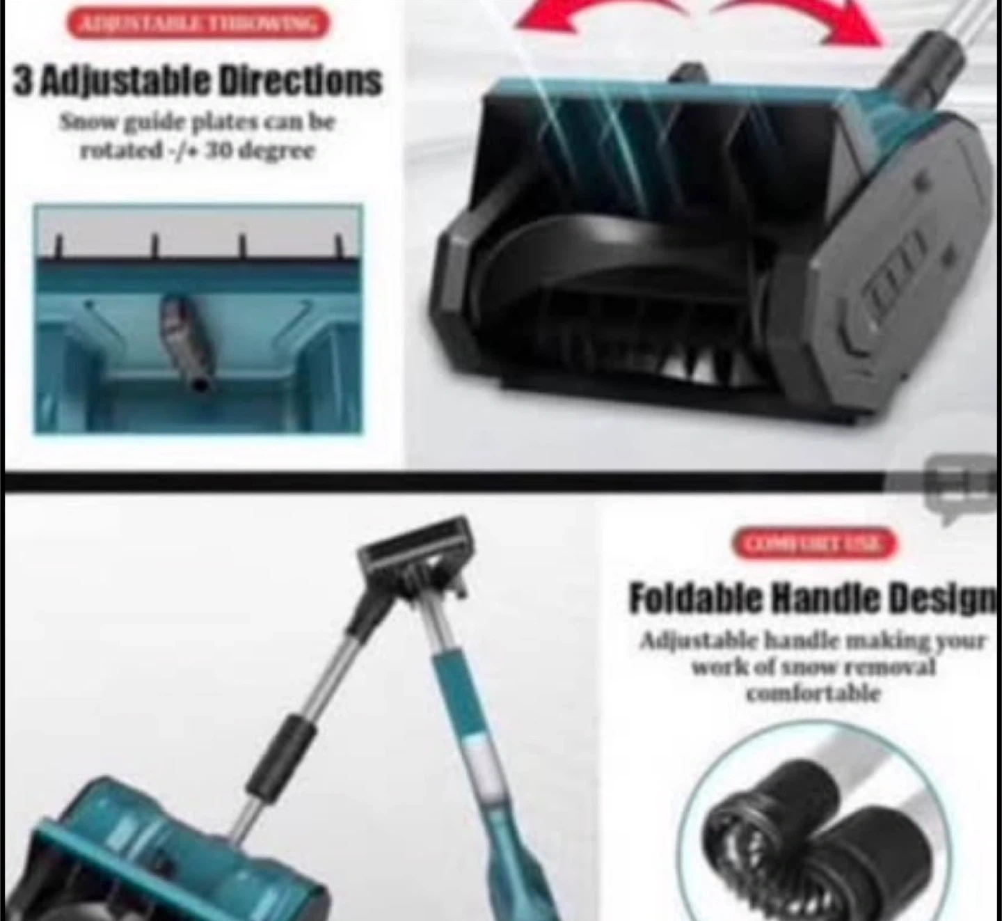 Snow Shovel Cordless, Battery Powered Snow Blower with Directional Plate & Adjustable Front Handle, Snow Blower Shovel for Patio Deck Driveway NO BATTERY