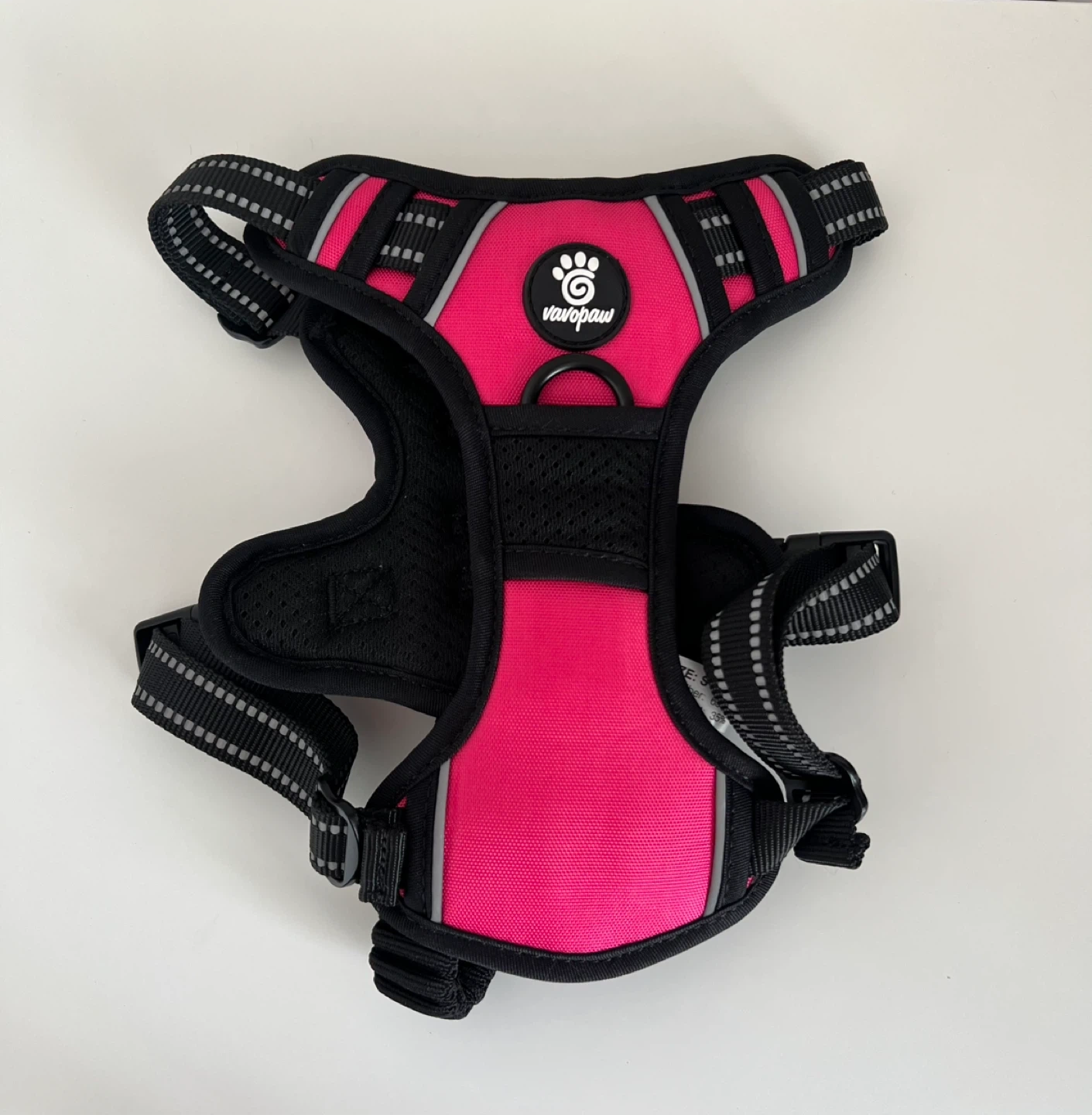 79Selling a Vavopaw dog harness in size small! It's a vibrant pink colour with black accents and reflective trim.