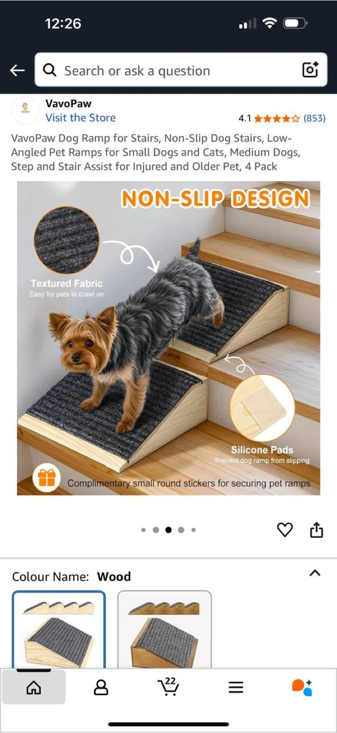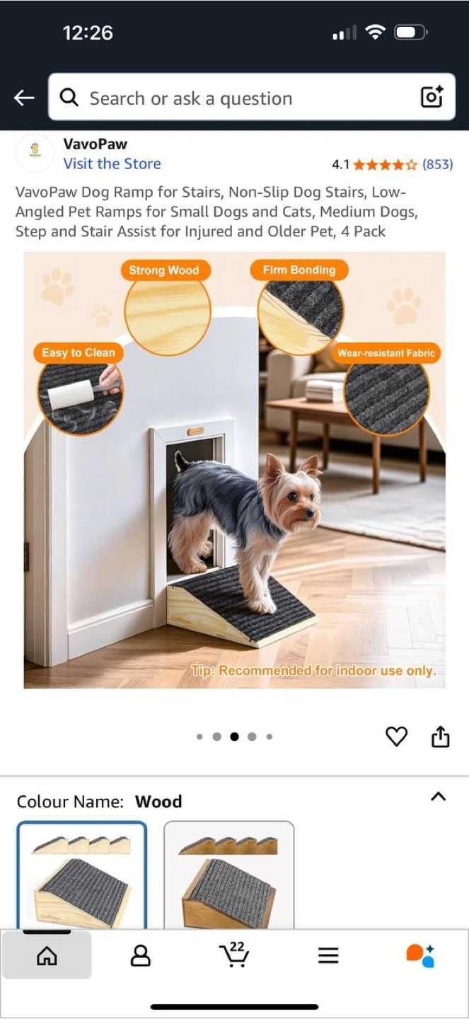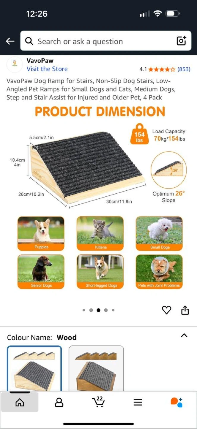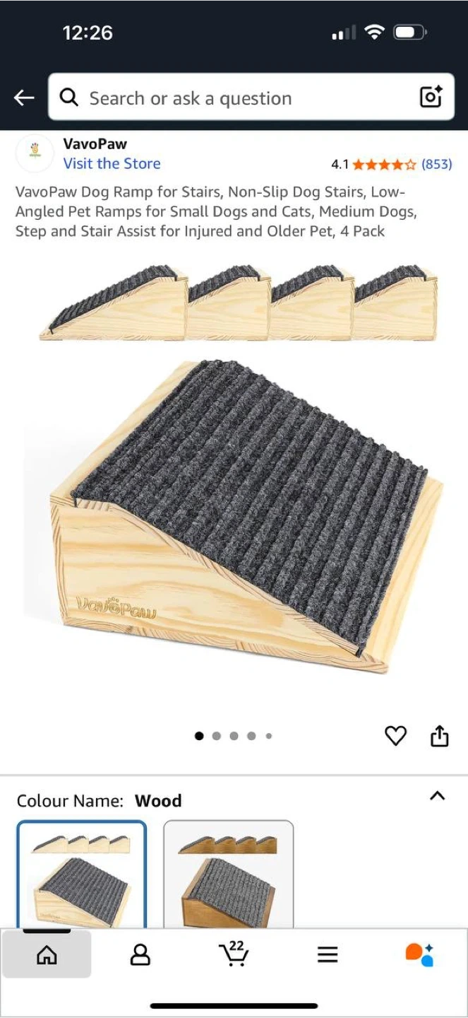 ๐ถ VavoPaw Dog Ramp for Stairs โ Set of 4 ๐ฆ Brand new in box โ Non-slip dog stairs/ramps for small & medium dogs, cats, puppies, kittens โ Perfect for senior pets, short-legged breeds, or pets with joint problems โ Made from strong wood with wear-resistant fabric โ Size: 30cm x 26cm x 10.4cm (11.8โ x 10.2โ x 4โ) โ Load capacity: 154 lbs (70 kg) โ Includes complimentary silicone pads & stickers to prevent slipping ๐ฒ Price: 99 CAD โจ Retails higher online โ save with this deal! ๐ Check out my other listings for more great items!