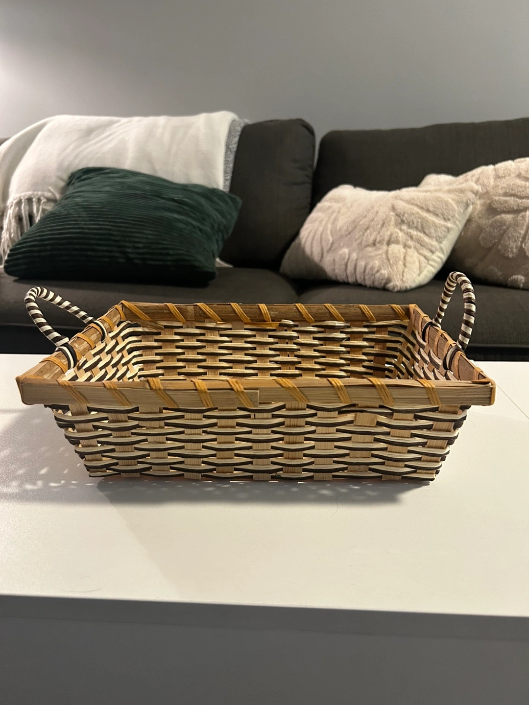 Buy & SellWoven Basket TrayWoven Basket TrayFreeRectangular woven basket with two handles. Brown and beige design. Perfect for organizing or displaying items.ConditionLike newWHERE TO MEETShoppers Grand ParkView MapSELLERMitchCity Center261 review5 chats·0 favorites·30 viewsSEND CHAT TO SELLERHi Mitch! I’m interested in your listing.Hi Mitch! I’m interested in your listing.Get the Karrot app to chatSign In to chat
