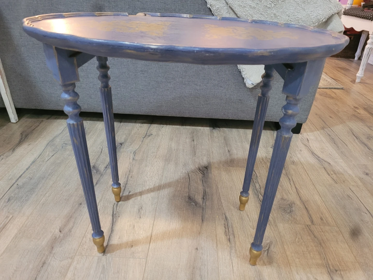 Vintage Style Oval Accent Table - Blue & Gold