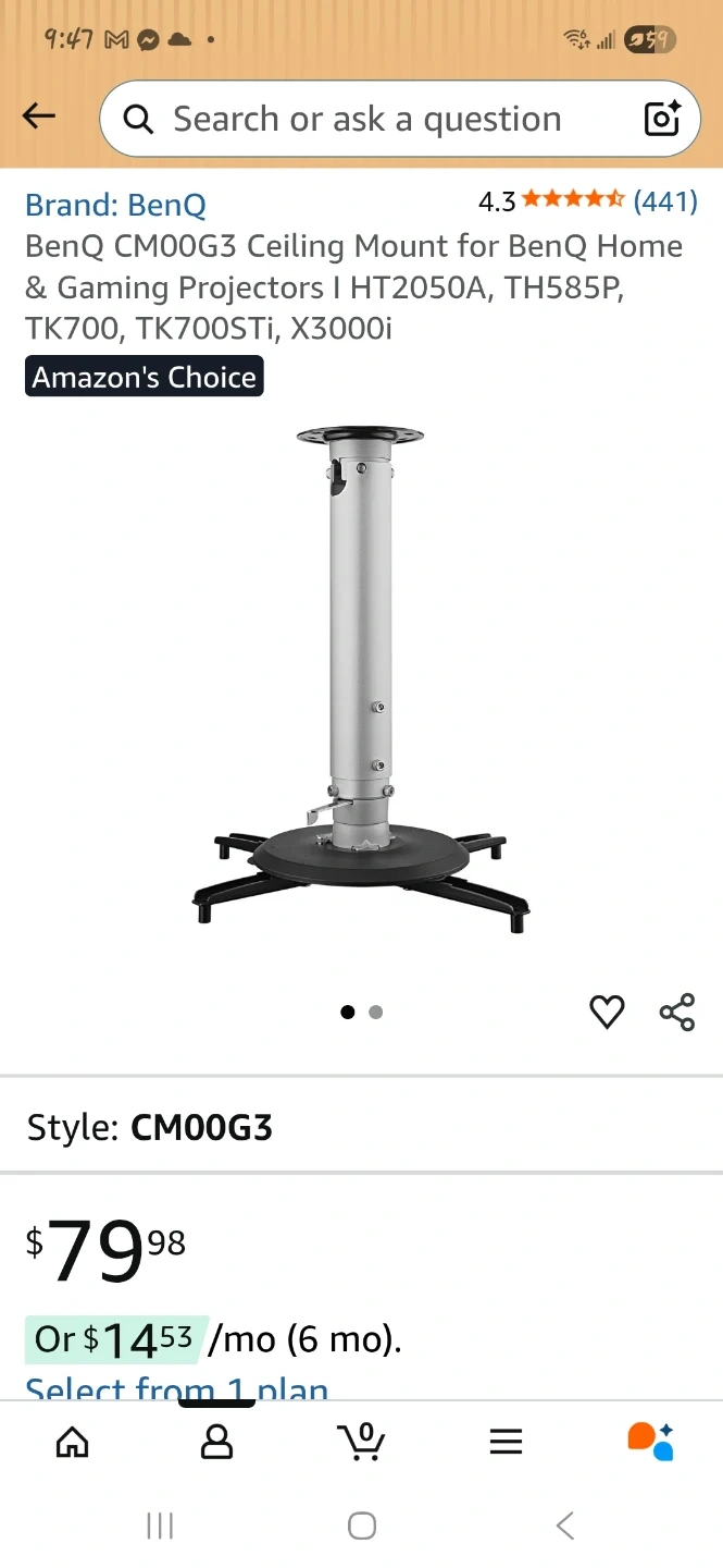 Selling a BenQ CM00G3 ceiling mount designed for BenQ home and gaming projectors, including models like HT2050A, TH585P, TK700, TK700STi, and X3000i. It's in great shape and ready to be installed
