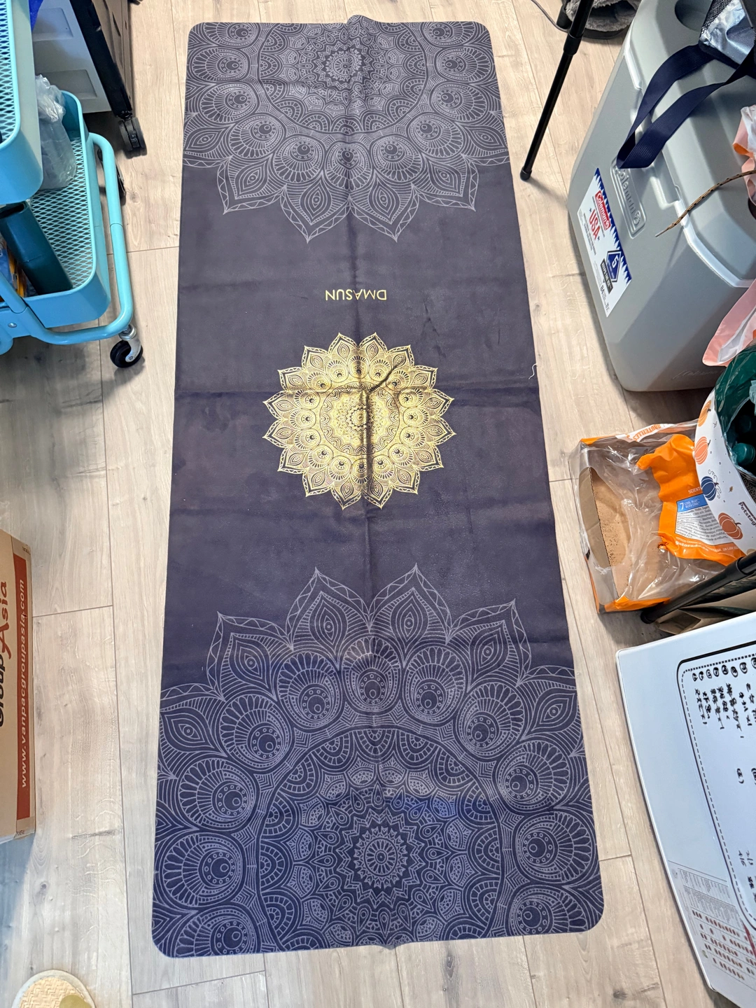 Yoga mat with mandala design.