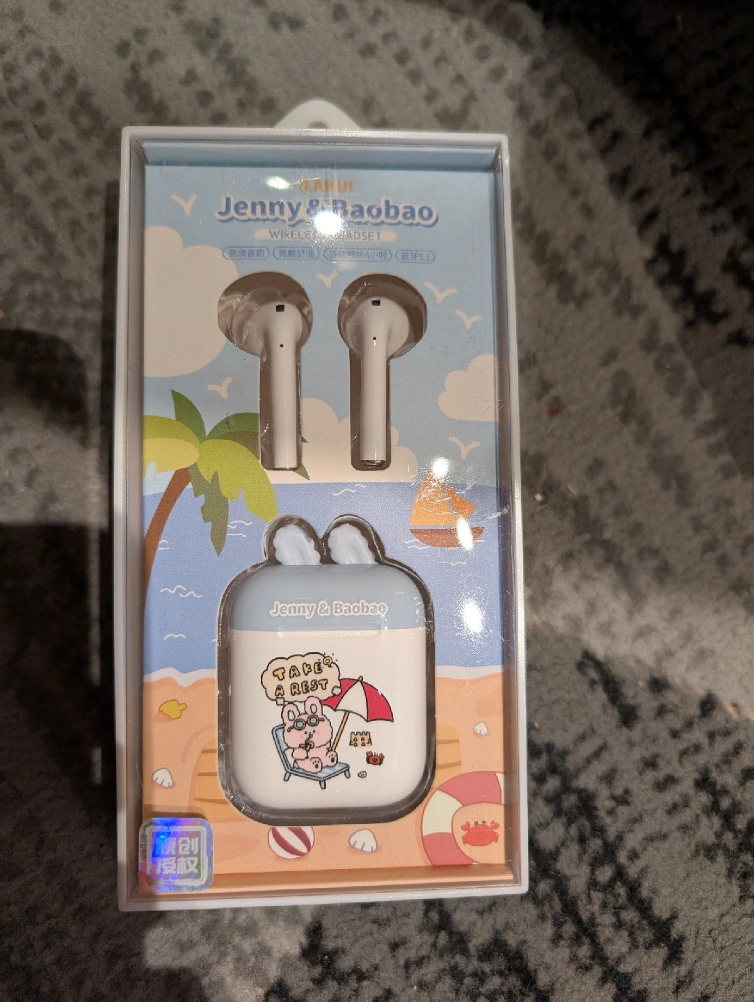 Selling a brand new Jenny & Baobao wireless headset! It comes in the original box and features a cute design on the charging case. Perfect for listening to your favourite tunes on the go, pickup in Riverbend SE