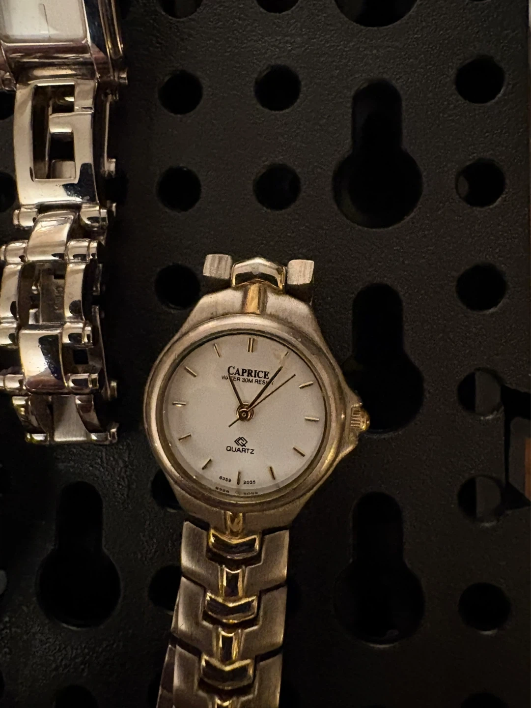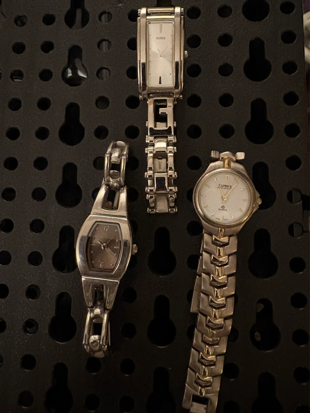 This is a Caprice quartz watch with water resistance. A guess watch. And 1 other. All are vintage. Batteries in all 3