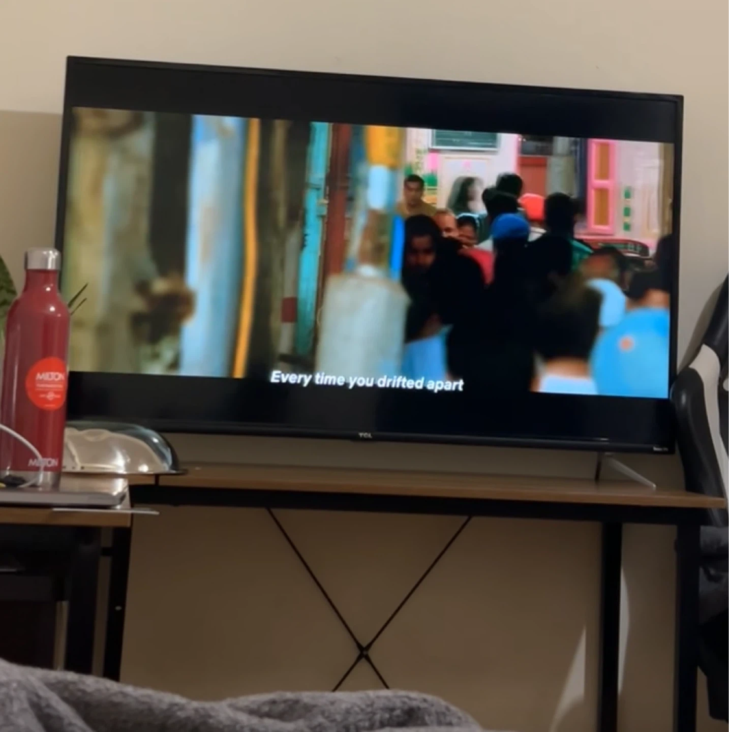 This TCL 4K Smart TV offers stunning picture quality for your favourite shows and movies. It's perfect for a living room or bedroom setup with Home Office Trestle Computer Desk with Open Storage Shelves.