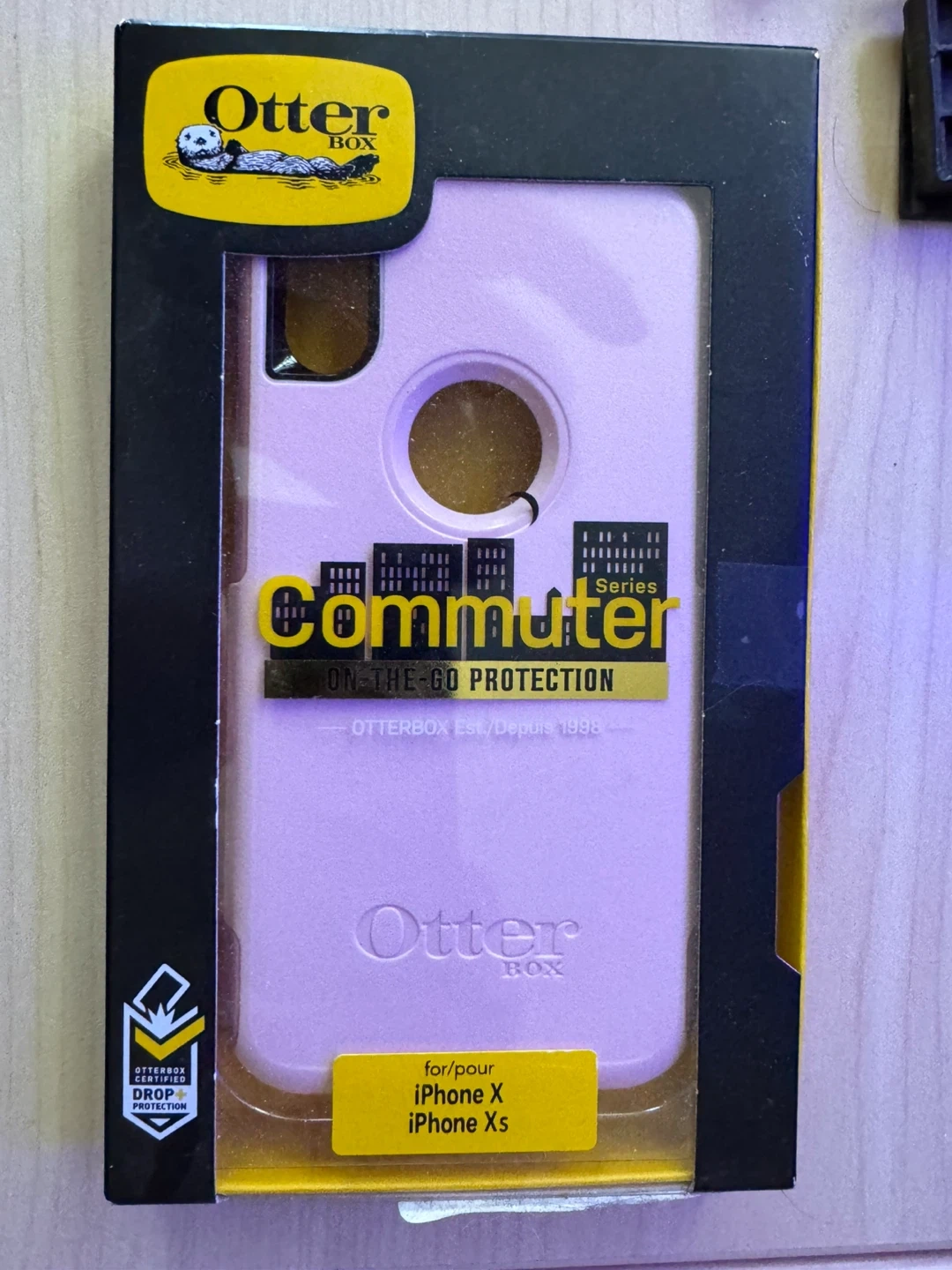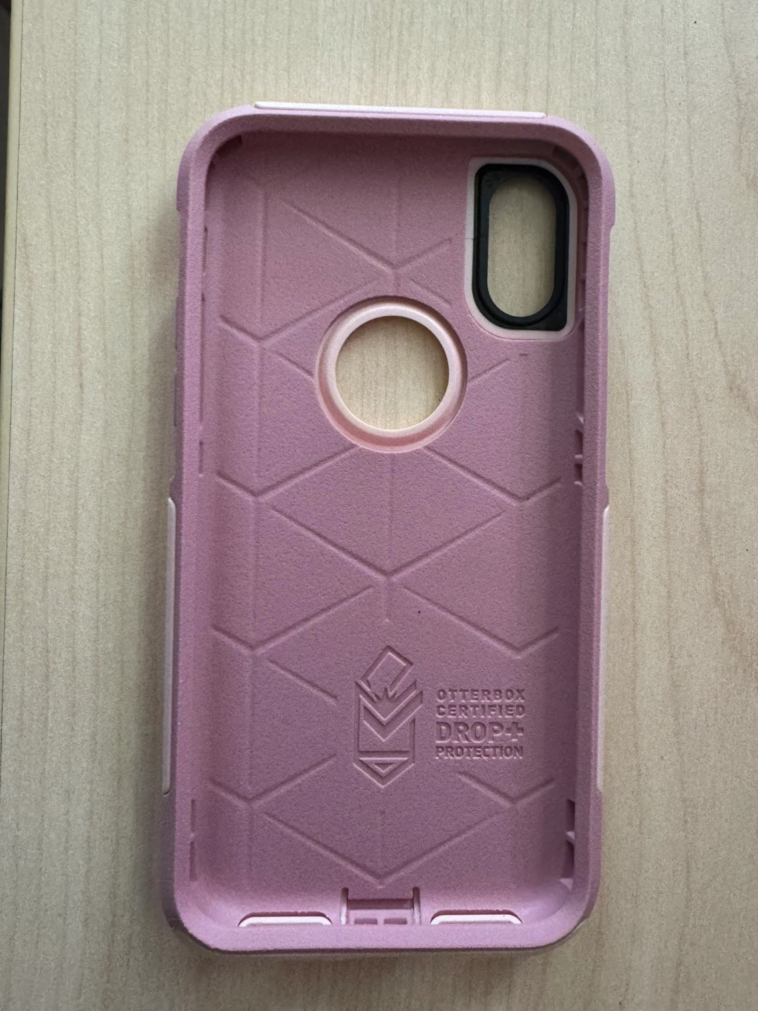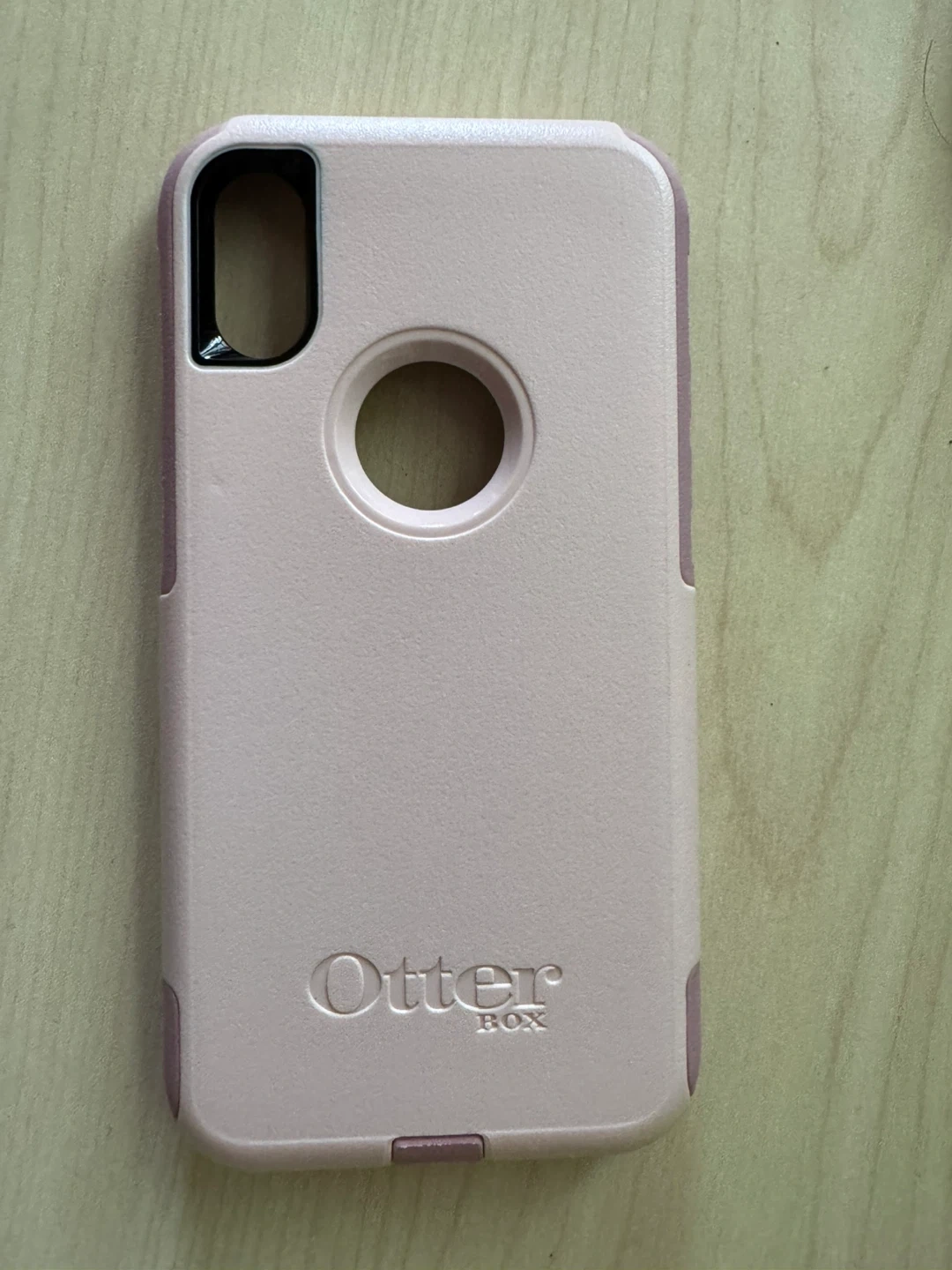 OtterBox Commuter Series case for iPhone X and iPhone Xs. Offers on-the-go protection with a two-layer design. It's a durable pink case with drop protection. Great for keeping your phone safe from bumps and scratches!