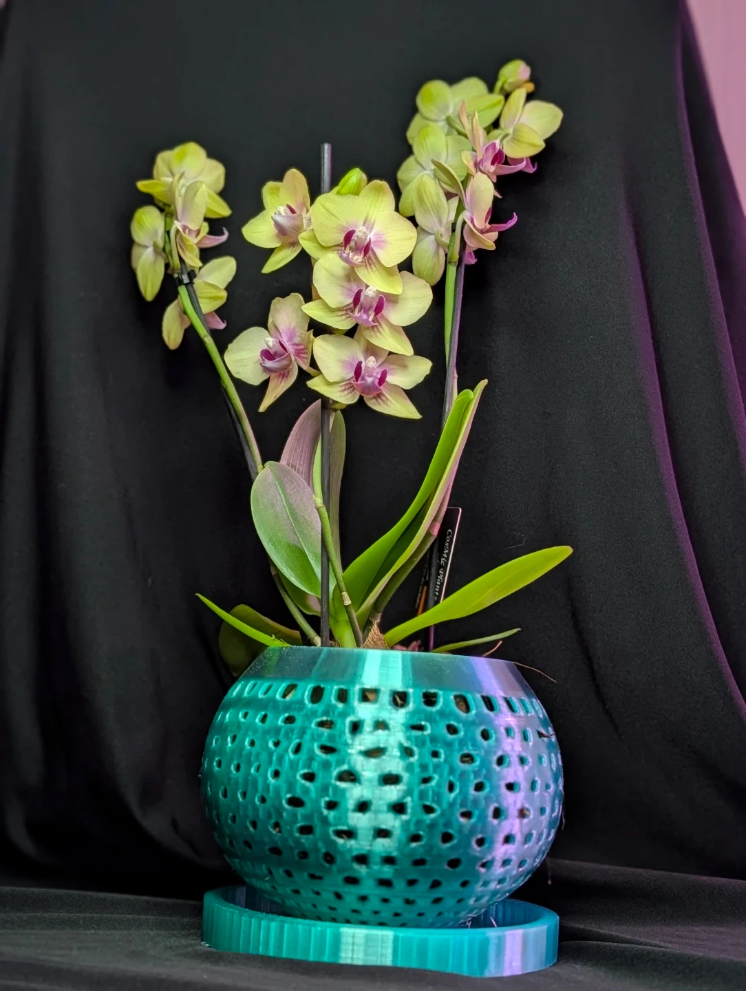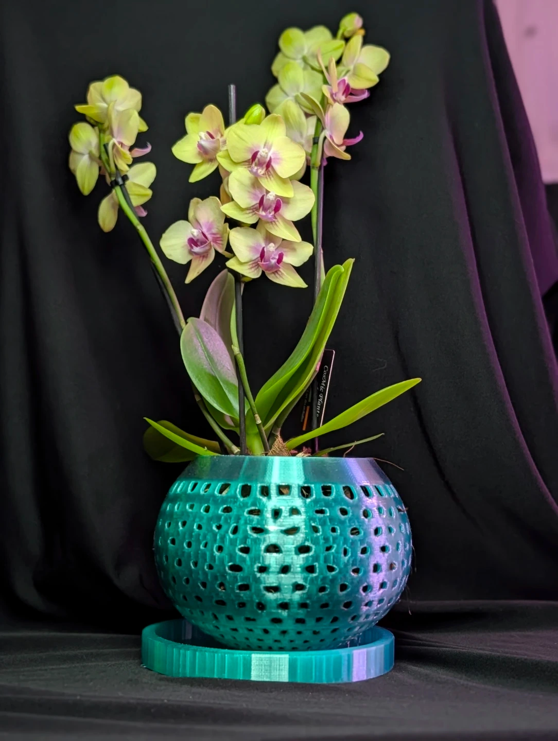 Handmade 3D printed orchid pot with matching tray. Designed with airflow openings to give your orchid a stylish, modern home. Available in different colors to match your decor.