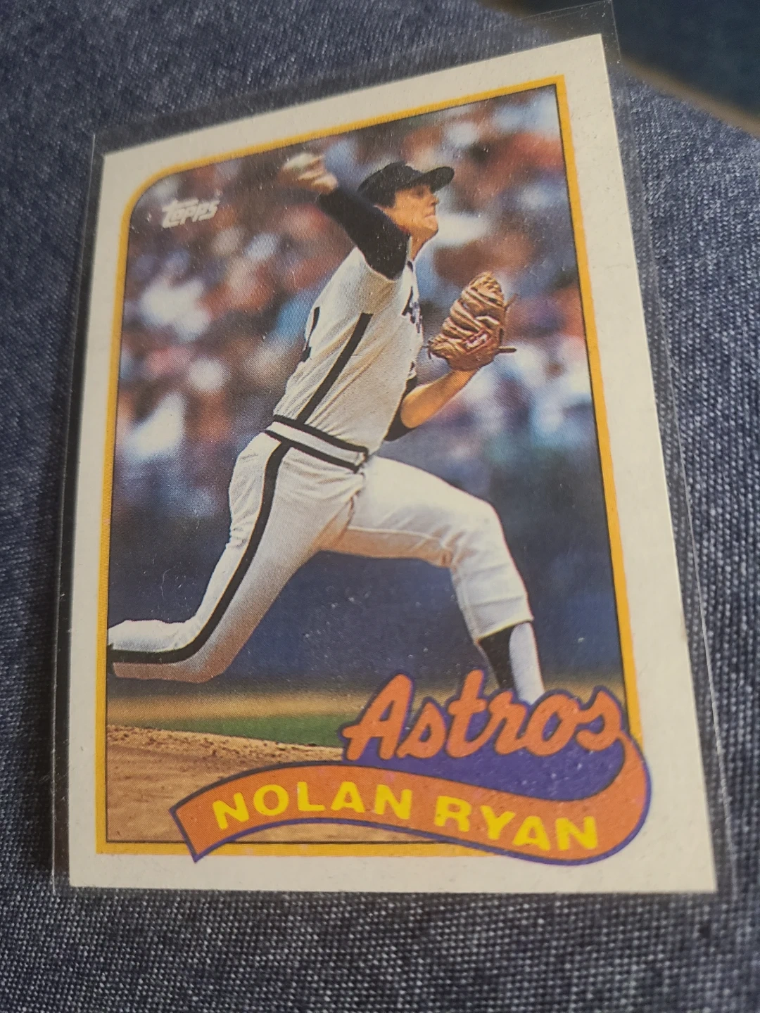This is a 1989 Topps Nolan Ryan baseball card, number 530. It features his complete major league pitching record. A great addition for any baseball collector!