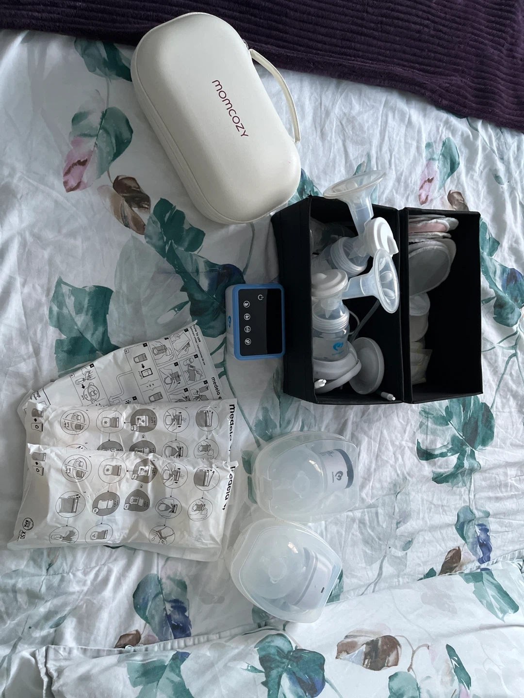 Selling a Momcozy breast pump that comes with a case for easy storage and portability! Also included are BellaBaby components, providing extra options and flexibility for your pumping needs