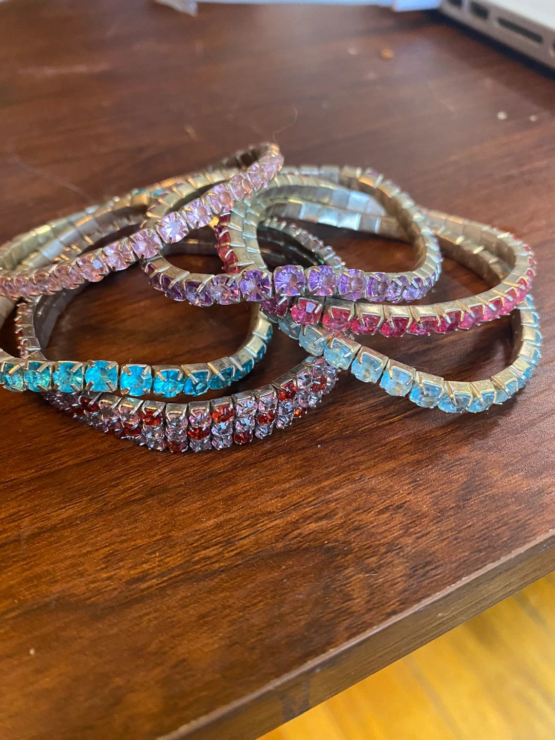 An array of stretch bracelets. 6 in total. Worn maybe once
