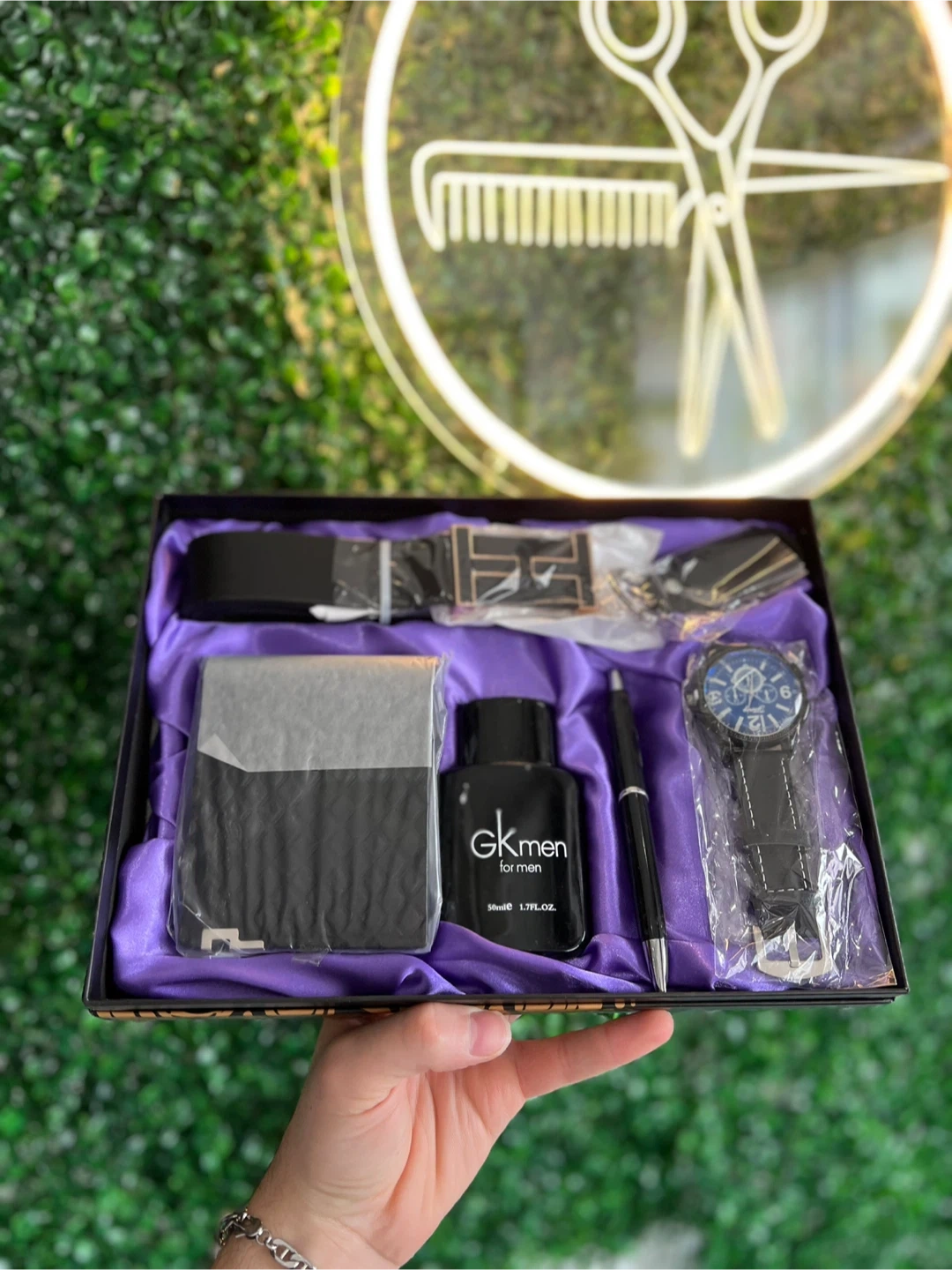 GK Men Gift Set with Watch, Wallet, Belt, Pen, and Cologne