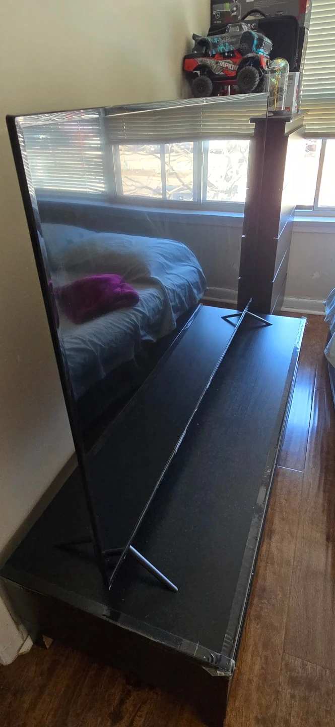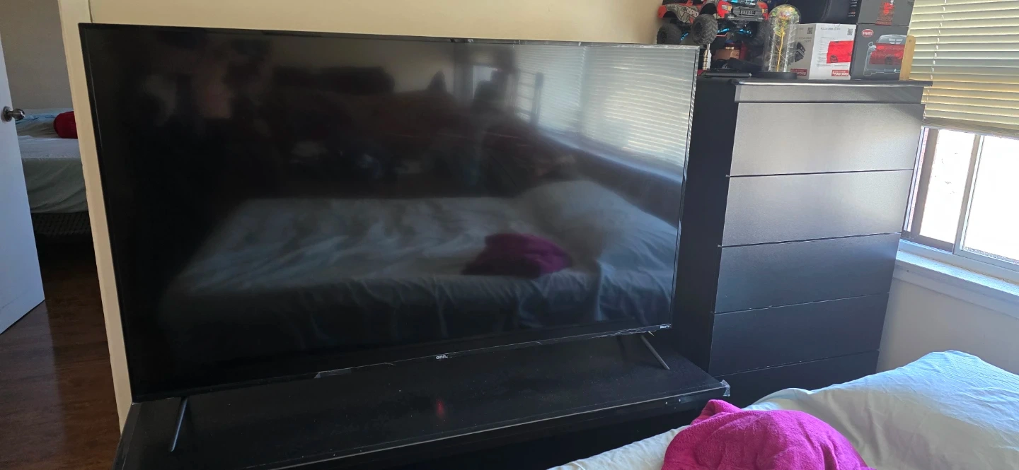 Roku ONN tv 65-inch Smart TV 4k. It's a flat screen with a stand. Comes with the necessary cables.