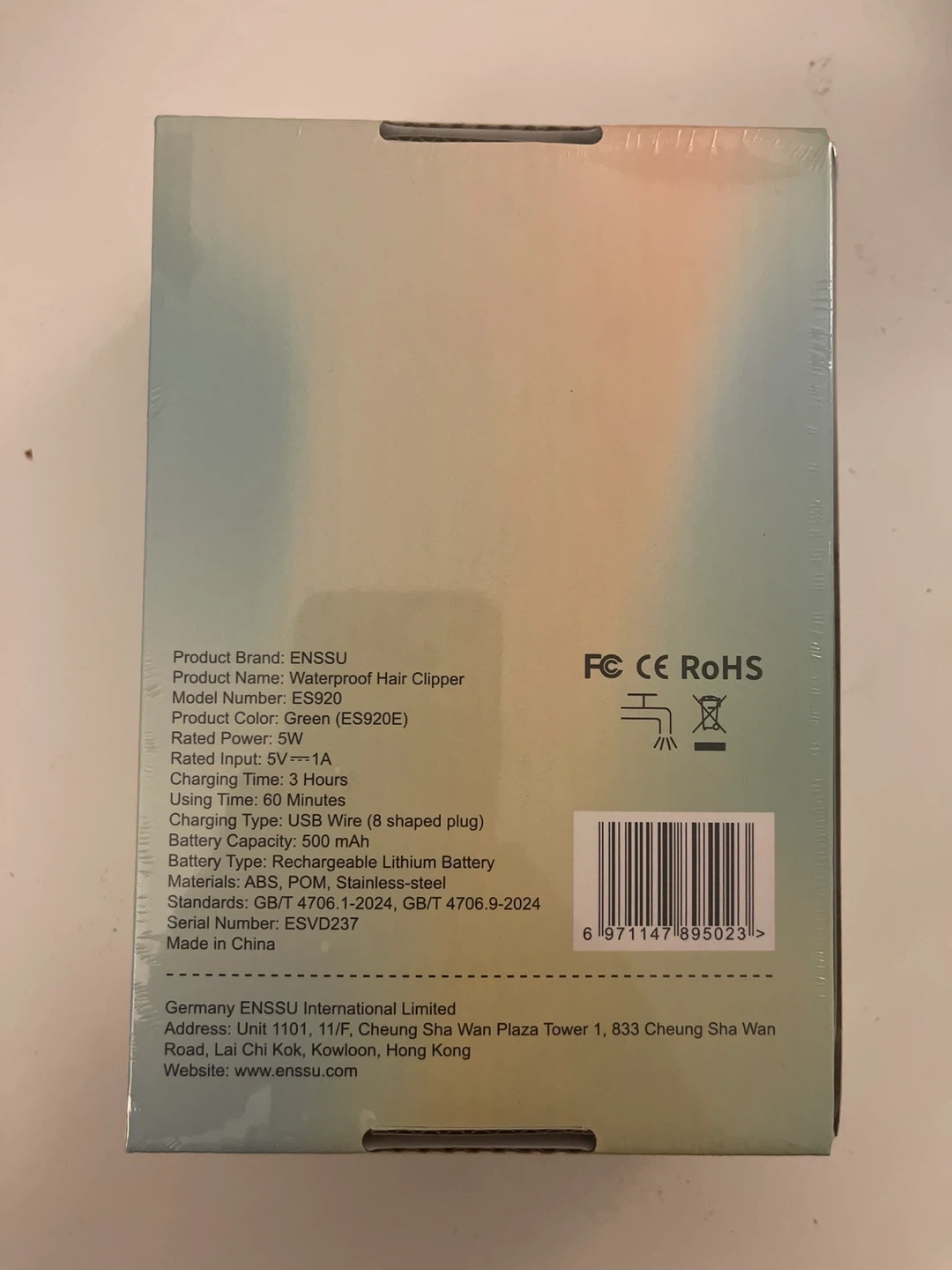 This ENSSU waterproof hair clipper is designed for babies 0+ months. It features USB portable charging and comes with limiting combs. The clipper is smooth, safe, and low noise for a comfortable experience. It's rechargeable and made with ABS, POM, and stainless-steel materials.