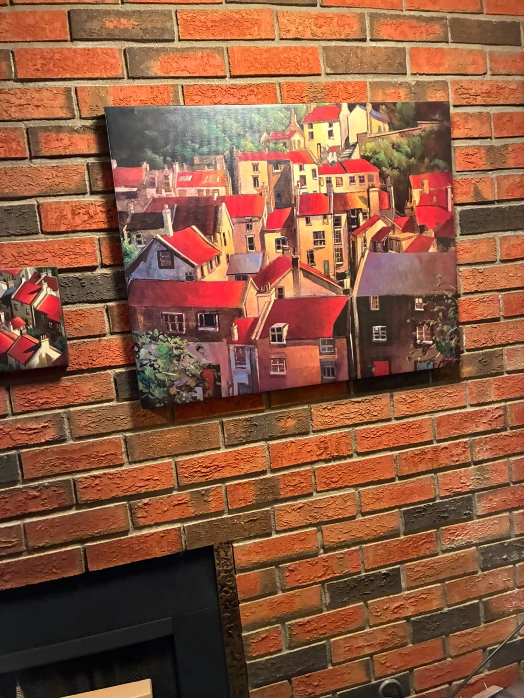 Selling a set of wall art featuring a charming village with red roofs. These pieces would add a touch of warmth and character to any room. Perfect for adding a pop of colour to your home decor!