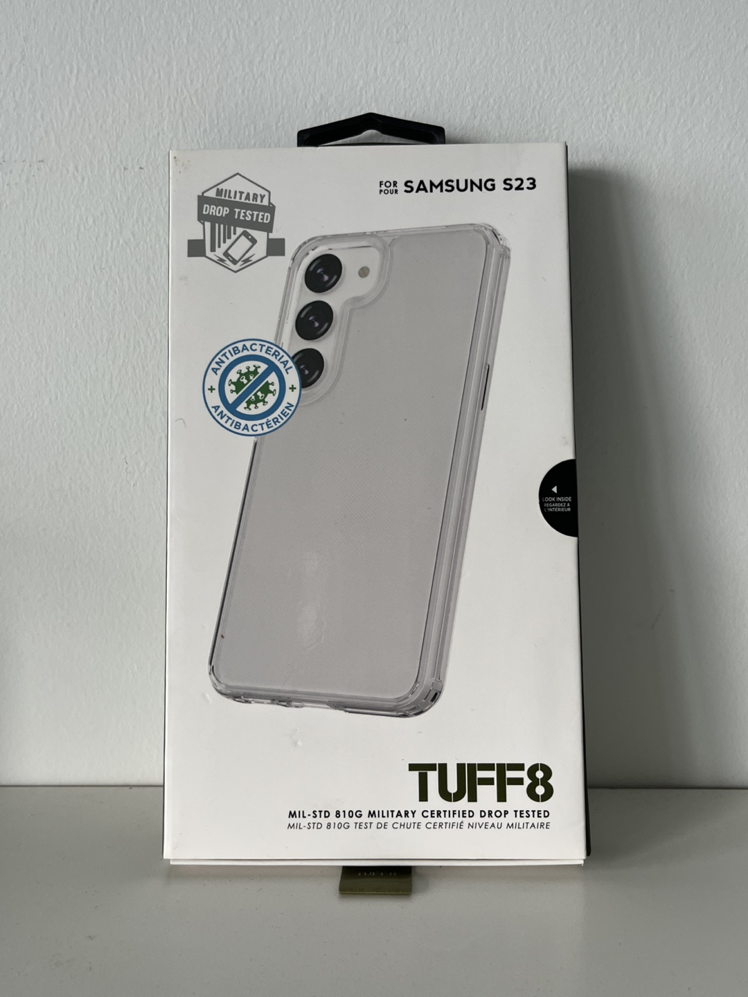 Selling a Tuff8 phone case for the Samsung S23 for $5. It's military drop tested and antibacterial for extra protection. The box is included!