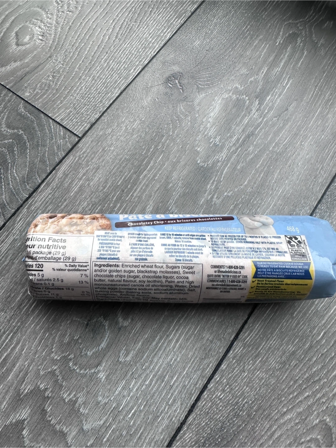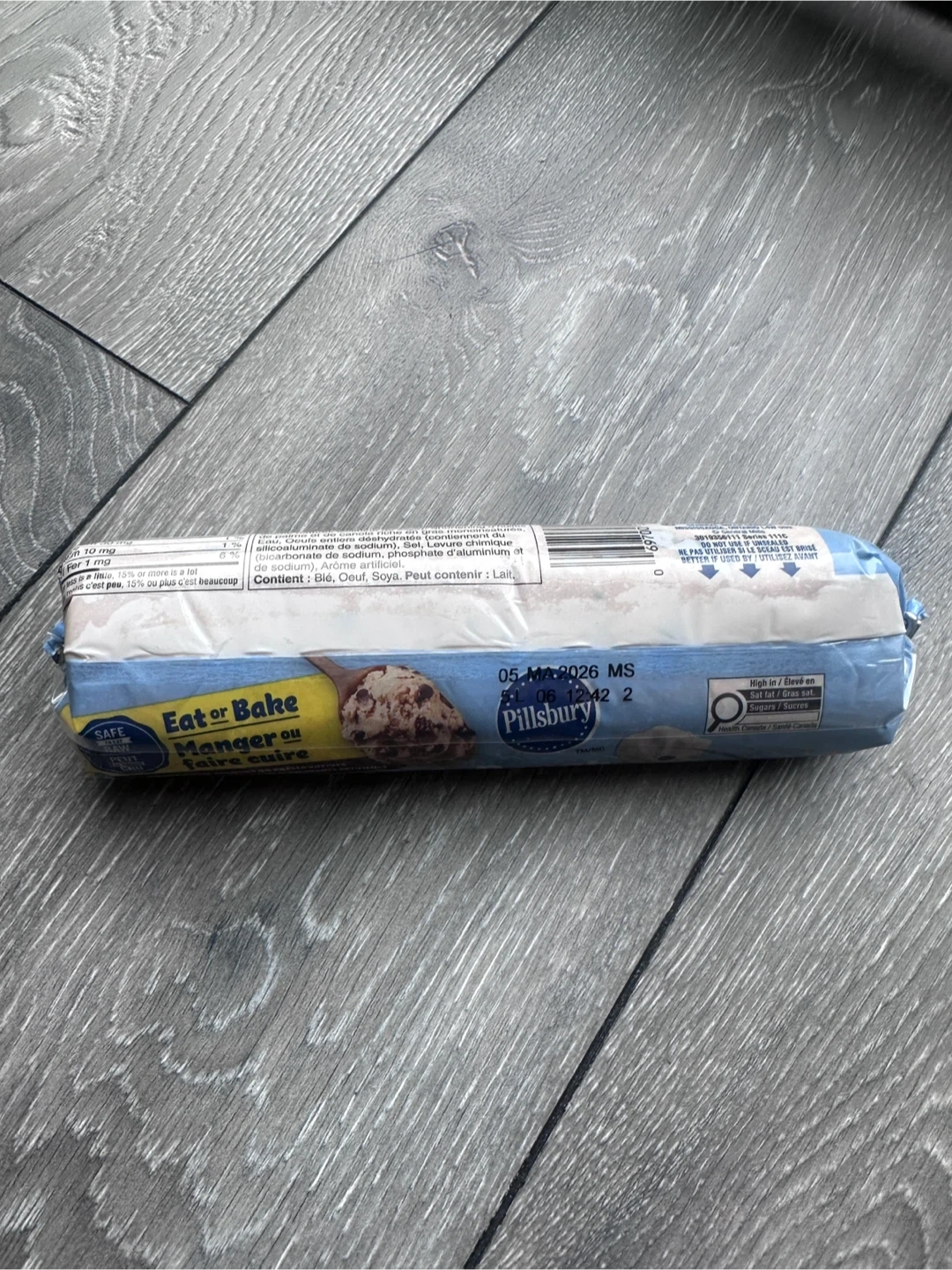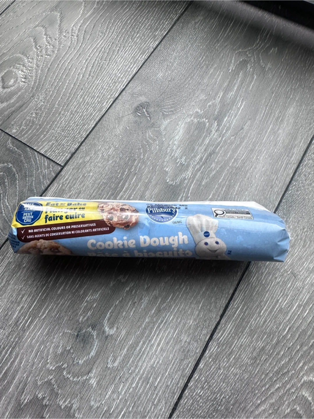 Selling a NEW tube of Pillsbury chocolate chip cookie dough. It contains enriched wheat flour, sugars, chocolate chips, and artificial flavours. It's ready to eat or bake! CASH ONLY. Pet-free and smoke-free household. Pickup 403 Church St.