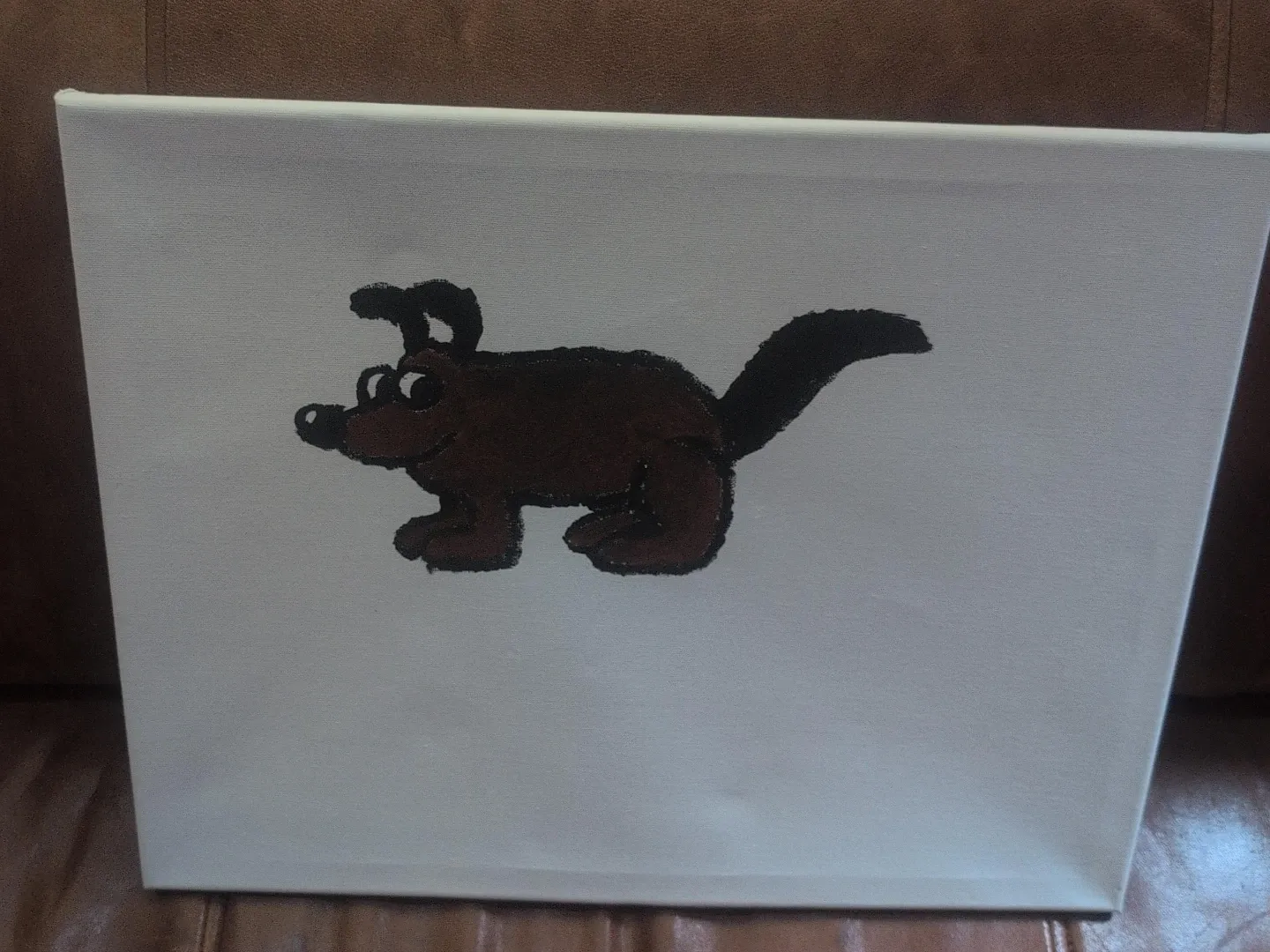 This is a hand-painted canvas featuring a cute brown dog. It's perfect for adding a touch of charm to any room. The canvas is stretched and ready to hang.